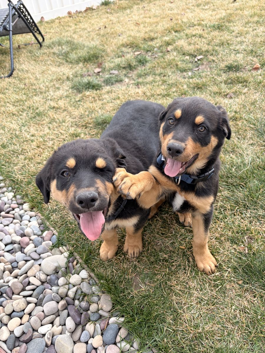 German shepherd- Rottweiler puppies, 9 weeks old. We picked these 2 cute boys up not too long ago with plans on keeping them forever, but life happened and we unfortunately need to find them new homes. They don’t seem super attached to each other so I don’t think they need to go to the same home. They’ve been vaccinated and have started potty / behavior training - they will continue with professional training sessions until they’re placed in their new homes. Both have phenomenal temperaments and dispositions! A good home is a must for these two. Text is best, serious inquiries only please.