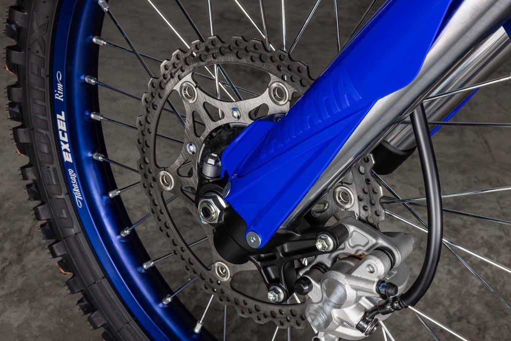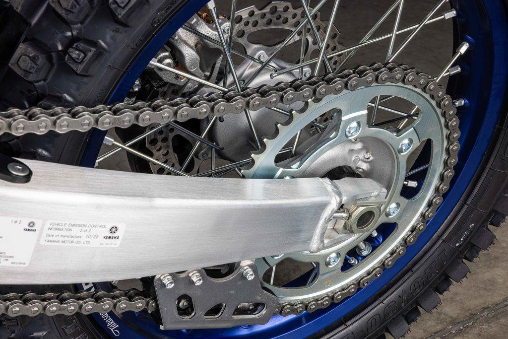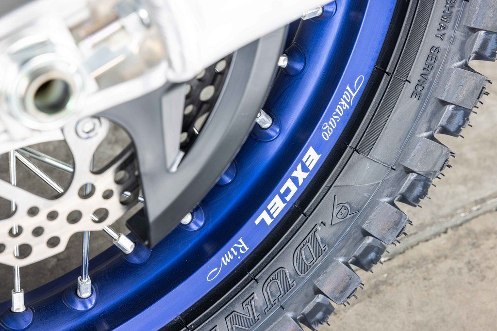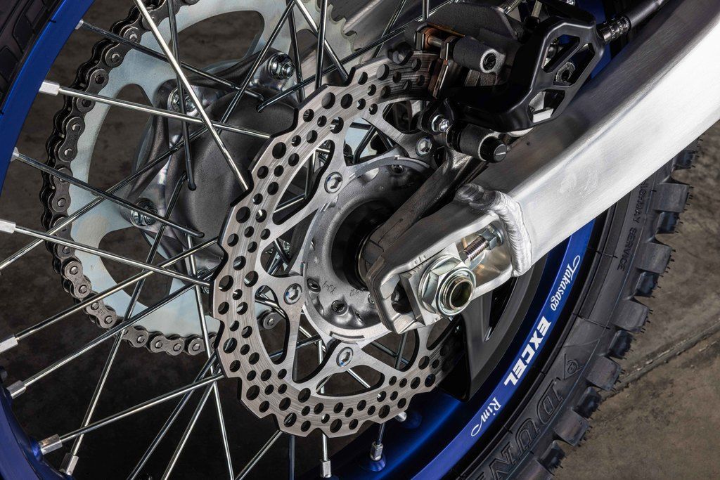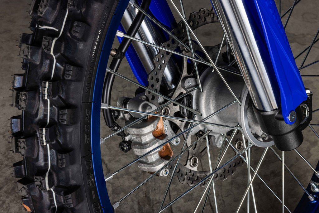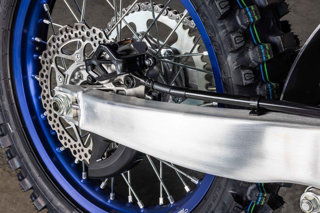 The WR450F's 18-inch rear wheel comes laced with a three-cross-spoke pattern for improved impact absorption and rider feel.