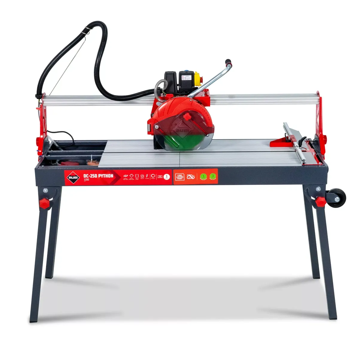 GooglePayThe Rubi Python 250 Bridge Saw is a high-precision cutting tool designed for professional tile and stone work, featuring a robust motor. Perfect for large format tiles and slabs.
