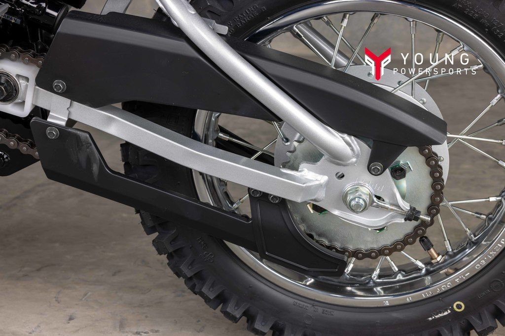 Monocross® rear suspension and gusseted steel swingarm provide excellent rear wheel control through 4.3 inches of travel.