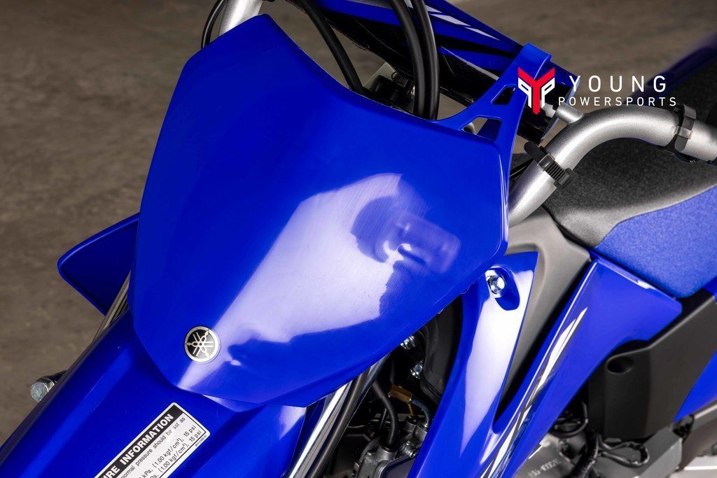 Team Yamaha-inspired colors and graphics with front and side number plates create competition motocross styling similar to its YZ siblings.