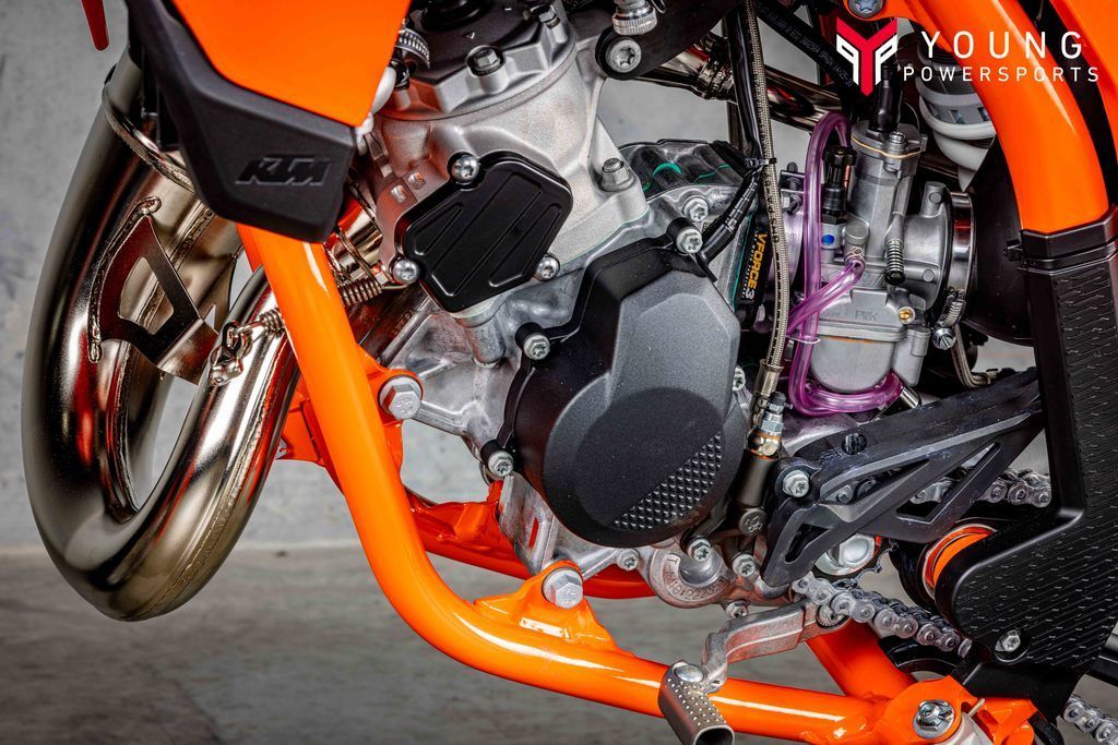 With EFI comes great rideability. Along with the electronic fuel injection is an electronic power valve on the KTM 125 SX, allowing for more usable power throughout the rev range. Smoother power means better traction. Better traction means holeshot heaven!
