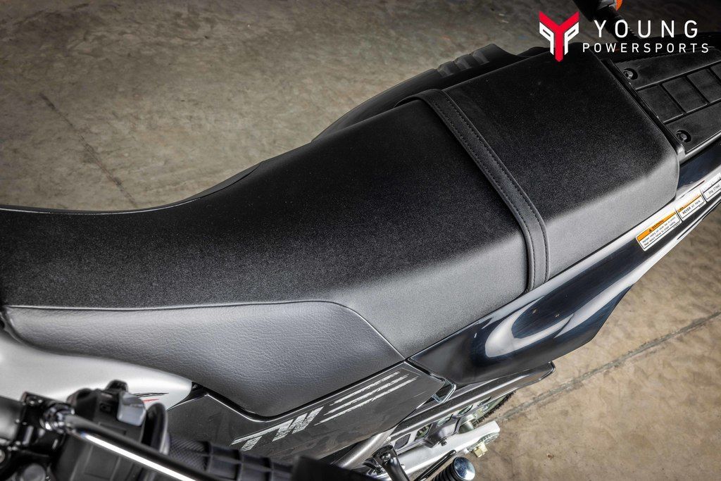 Long, two-tone, motocross-style seat creates a balanced riding position for optimal rider movement and comfort.