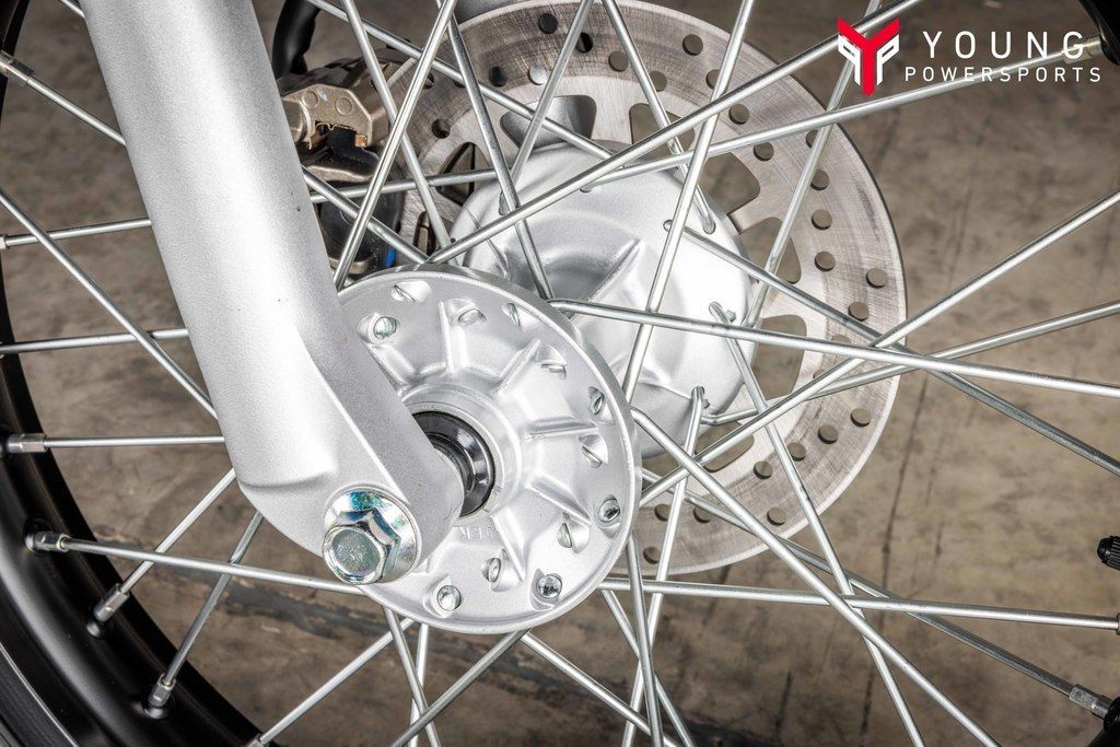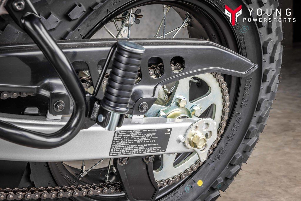 Lightweight box section swingarm and single rear shock with 5.9 inches of travel enhance handling and overall comfort both on- and off-road.