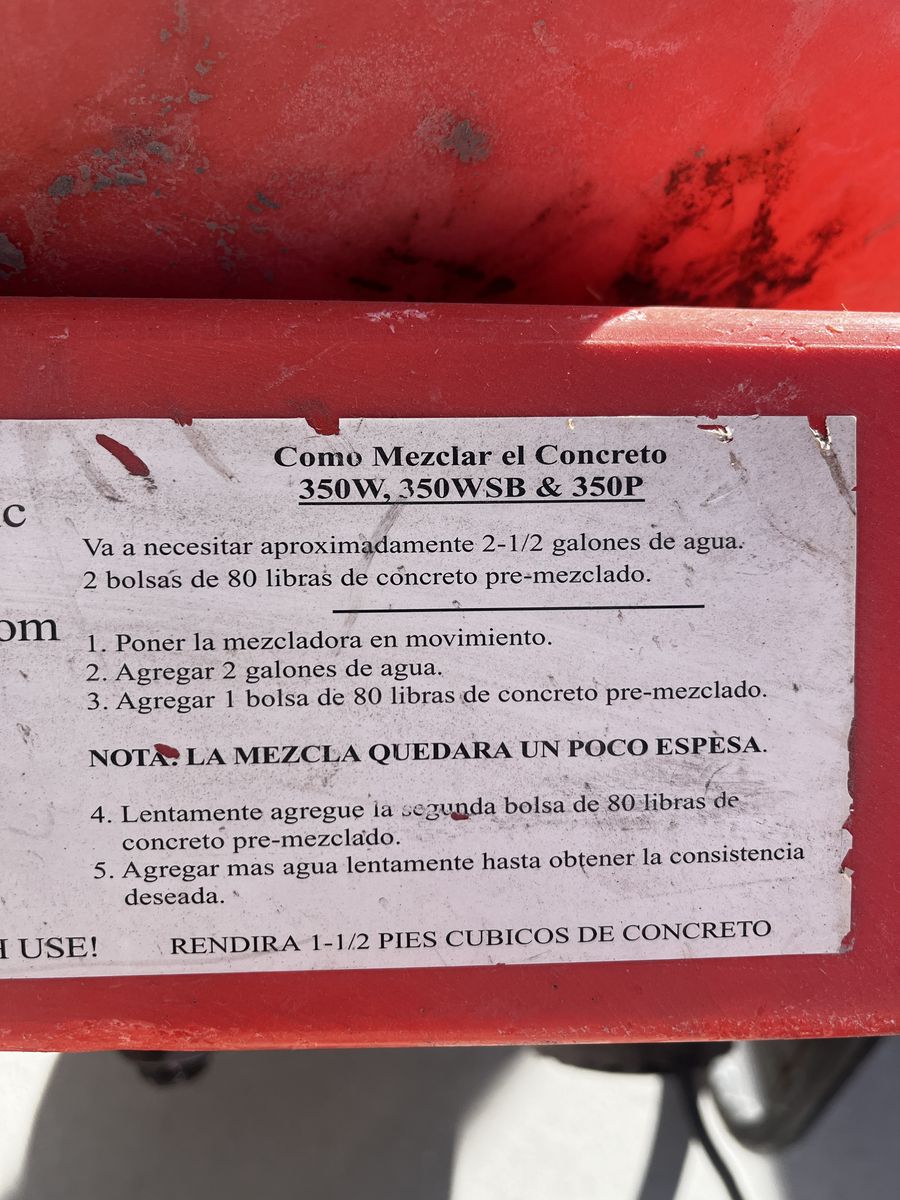 The Kushlan Products 350 Direct Drive Mixer is filled with features that make this rugged mixer affordable yet ideal for the do-it-yourselfer and professional. This wheelbarrow mixer is supported by a heavy gauge steel frame and polyurethane flat free tires. The 3/4 HP electric motor provides 26 rotations per minute. The 5/16" gauge polyethylene drums are resistant to dents, cracks, and rust yet easy to clean. Telescoping steel handles allow for easy breakdown for transport or storage. The 3.5 cu. ft. capacity drum holds 3-4 bags of 60 lbs. premixed concrete. CE, UL, and CSA Approved.