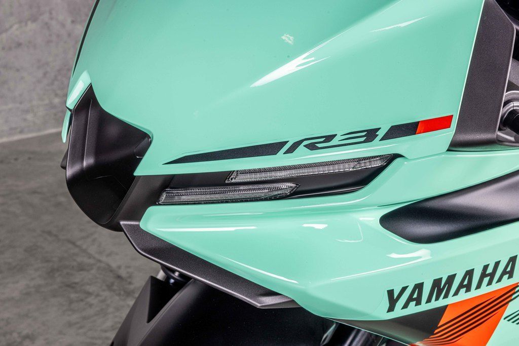 Inspired by the flowing aerodynamics of Yamaha's YZR-M1 MotoGP® race bike, the 2026 YZF-R3's distinctive R-Series pedigree is recognizable at a glance with its aggressive front fairing, sleek side panels and a sporty tail section with signature R-series tail wing.
