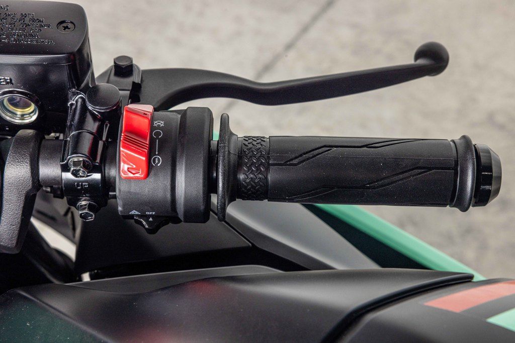 An LCD instrument cluster displays connected smartphone information along with vital vehicle data. There is also a USB-A socket located next to the display providing convenient power for phone charging or heated gear.