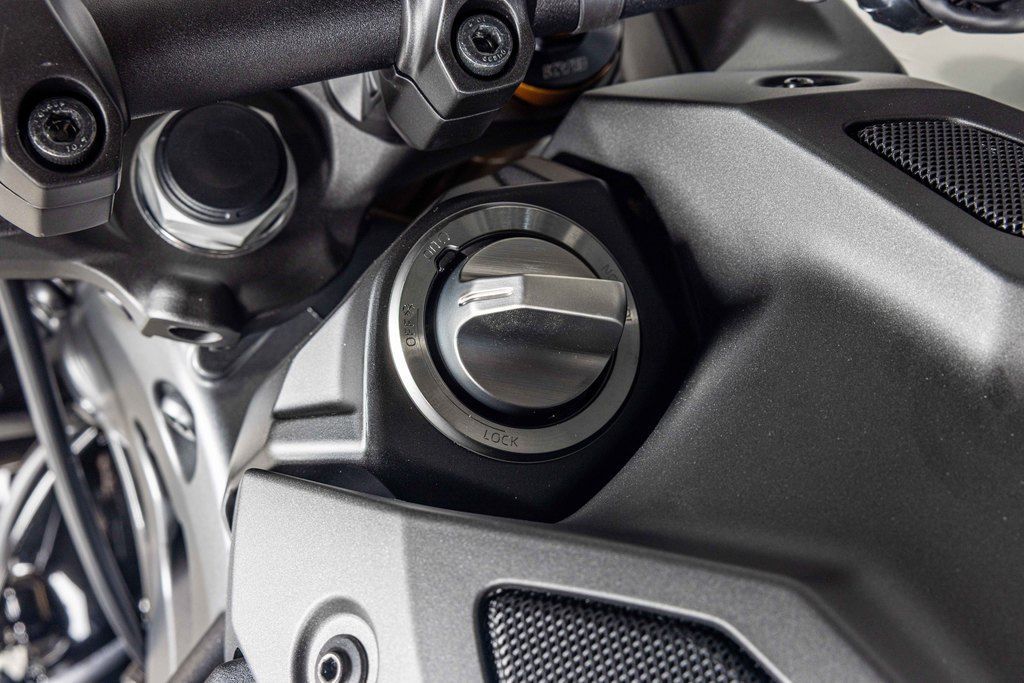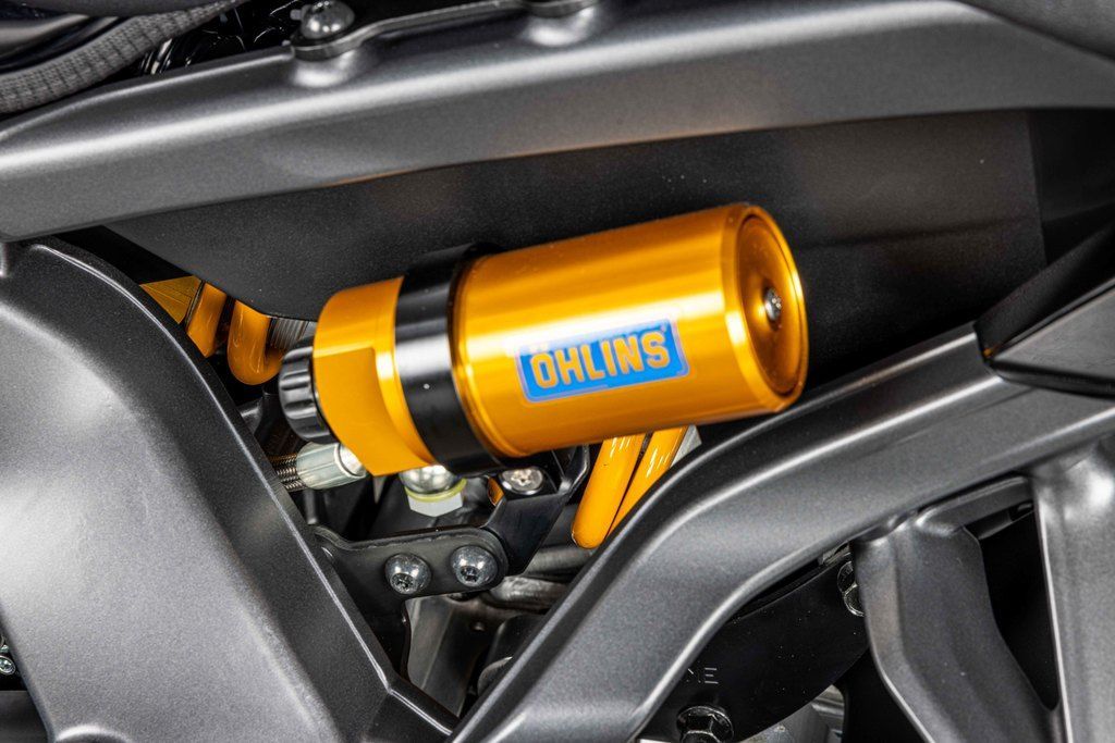 Premium SP-exclusive suspension brings Supersport-level handling and precision to the Hyper Naked class. The 41mm DLC coated KYB® forks and O–hlins® rear shock feature a higher spring rate offering outstanding stability during more spirited riding. Set-up can be fine tuned to suit a variety of different riding situations with the forks fully adjustable for preload, rebound, high- and low-speed compression damping, while the fully adjustable Öhlins® shock is equipped with a remote preload adjuster to enable quick and easy changes.