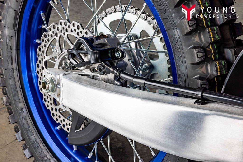 ADDITIONAL FEATURESBuilt for enduro with a 2.0-gallon fuel tank, rugged plastic skid plate, 18-inch rear wheel and sealed drive chain.