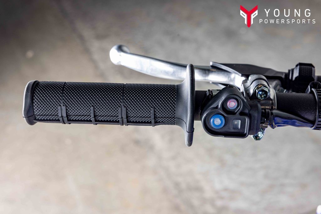 A multi-function display features a speedometer, trip information, and convenient low fuel and engine warning indicators.