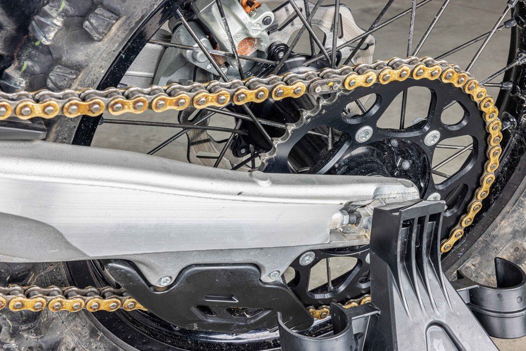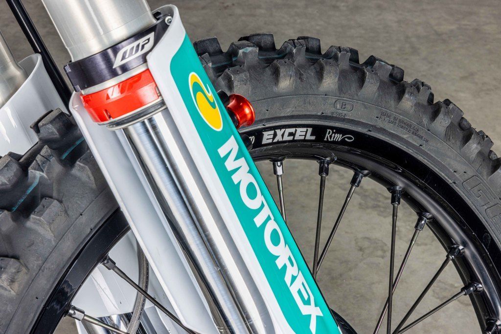The lightweight aluminium cylinder is undoubtedly an engineering masterpiece and features a 95 mm bore with a 63.4 mm stroke. Inside, the CP bridged-box-type piston features anodised annular grooves, adding durability and longer service intervals at a weight of just 327 g. For improved performance, the compression ratio has been increased to 13.1:1 to create an incredible peak power to ensure the FC 450 remains firmly at the front of the pack.