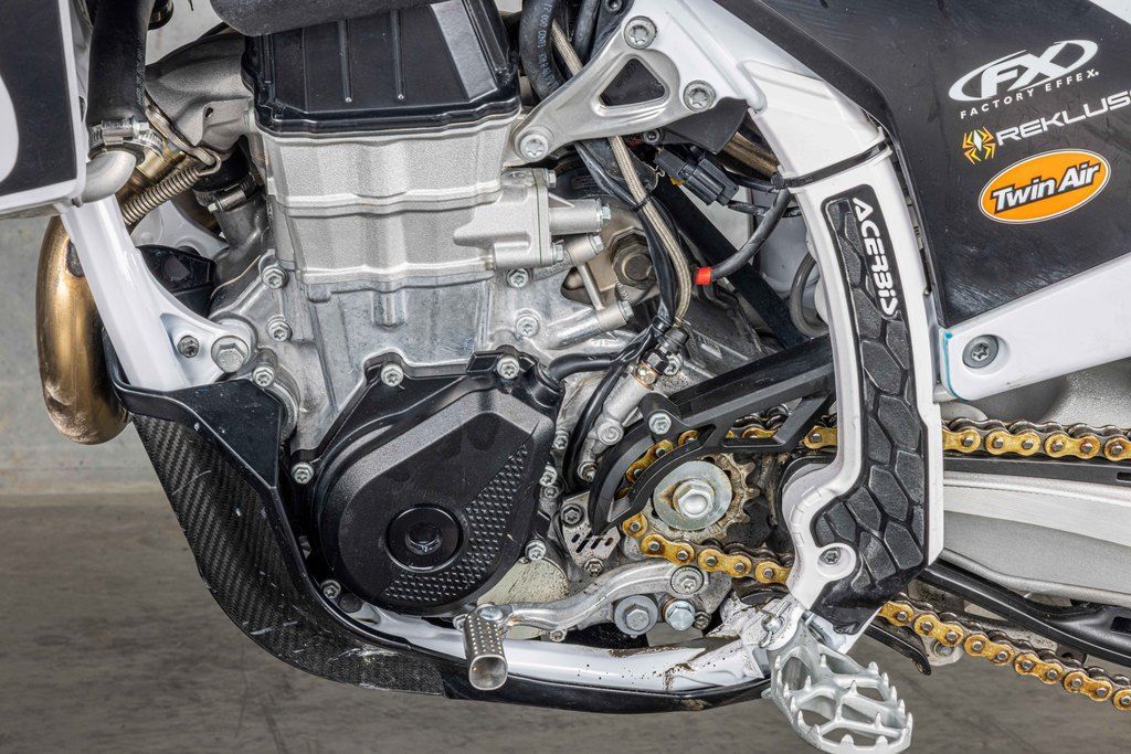 The FC 450 engine benefits from advanced engineering techniques to deliver maximum performance. Weighing just 26.8 lbs (26.8 kg), the engine is designed to centralise mass for enhanced handling and significantly improves anti-squat behaviour from the chassis. Servicing of the FC 450 engine is made easier compared to previous models thanks to the addition of service markers on the engine cases.