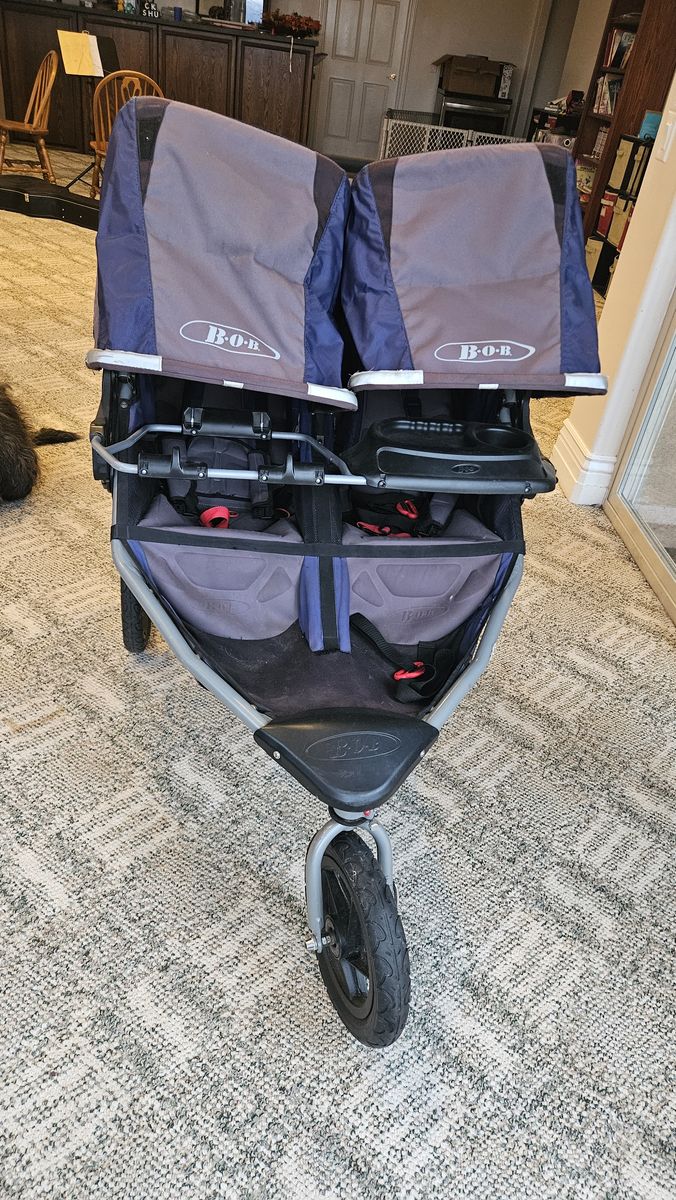 VenmoI'm selling our double Bob stroller that our kids have out grown. It includes a Graco car seat adapter for little babies with a toddler snack tray on the other side. This adapter is easy to remove if you don't want to use it. The only issue with the stroller is the plastic on the right side folding release is cracked so when you want to fold the stroller, you have to insert the rod into the handle, then pull the handle.