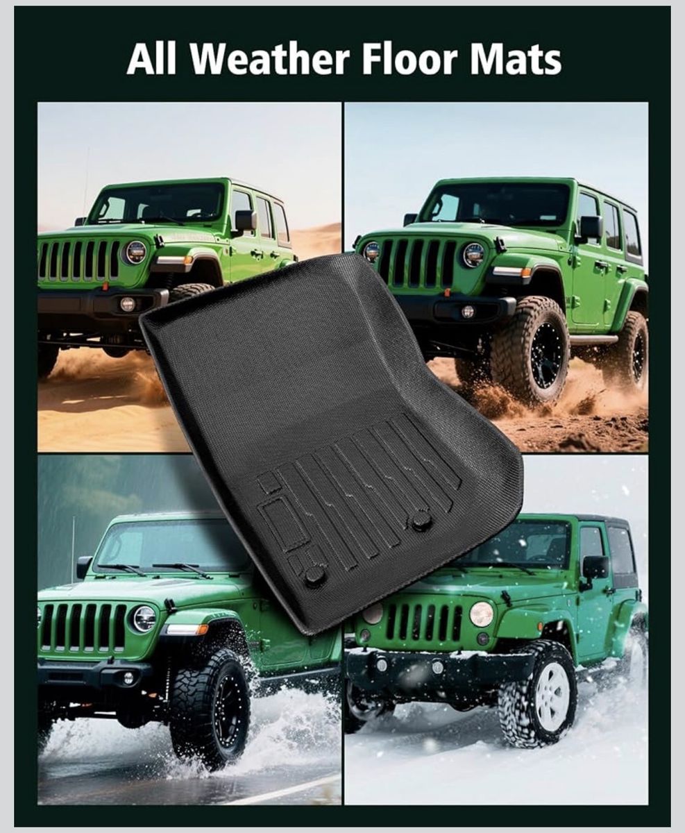 ApplePayFloor Mats for Jeep Wrangler: 2007-2018 JK 2-Door & JKU 4-Door, All Weather Rubber Car Accessories