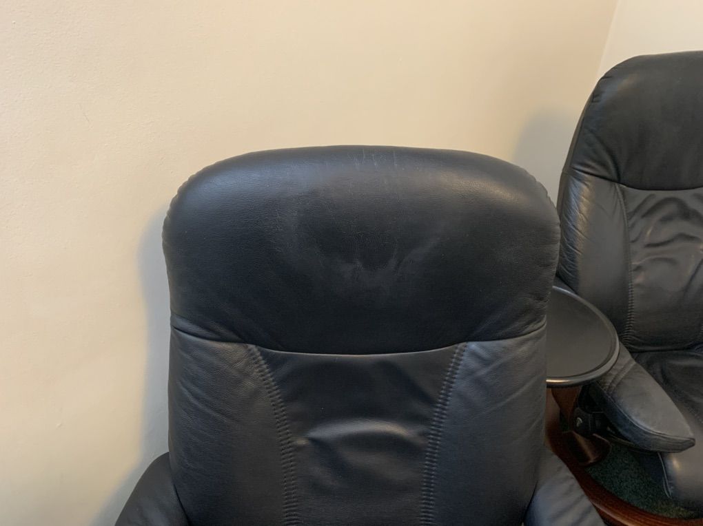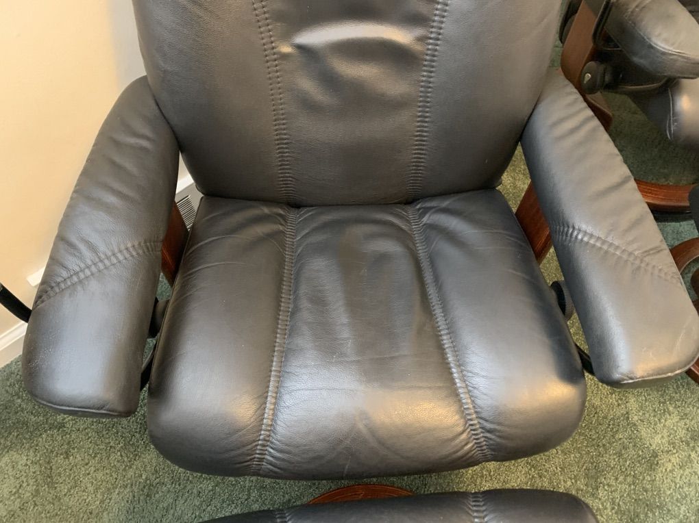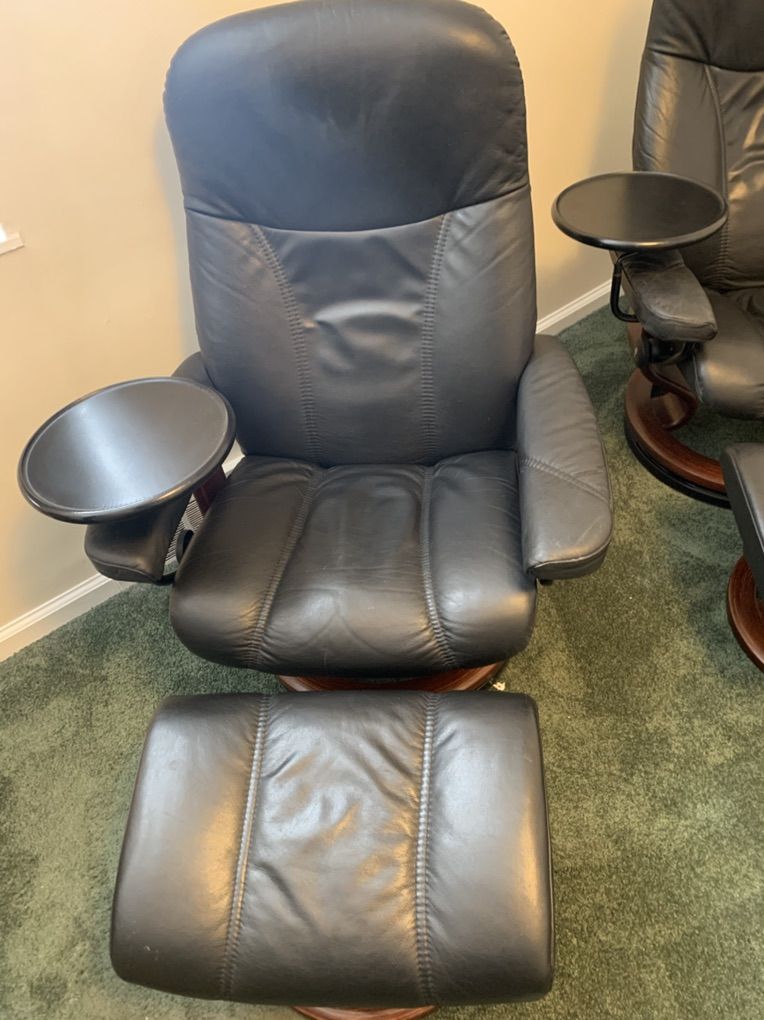 Two Stressless recliners in good shape. They are super comfortable. No significant scratches or defects.