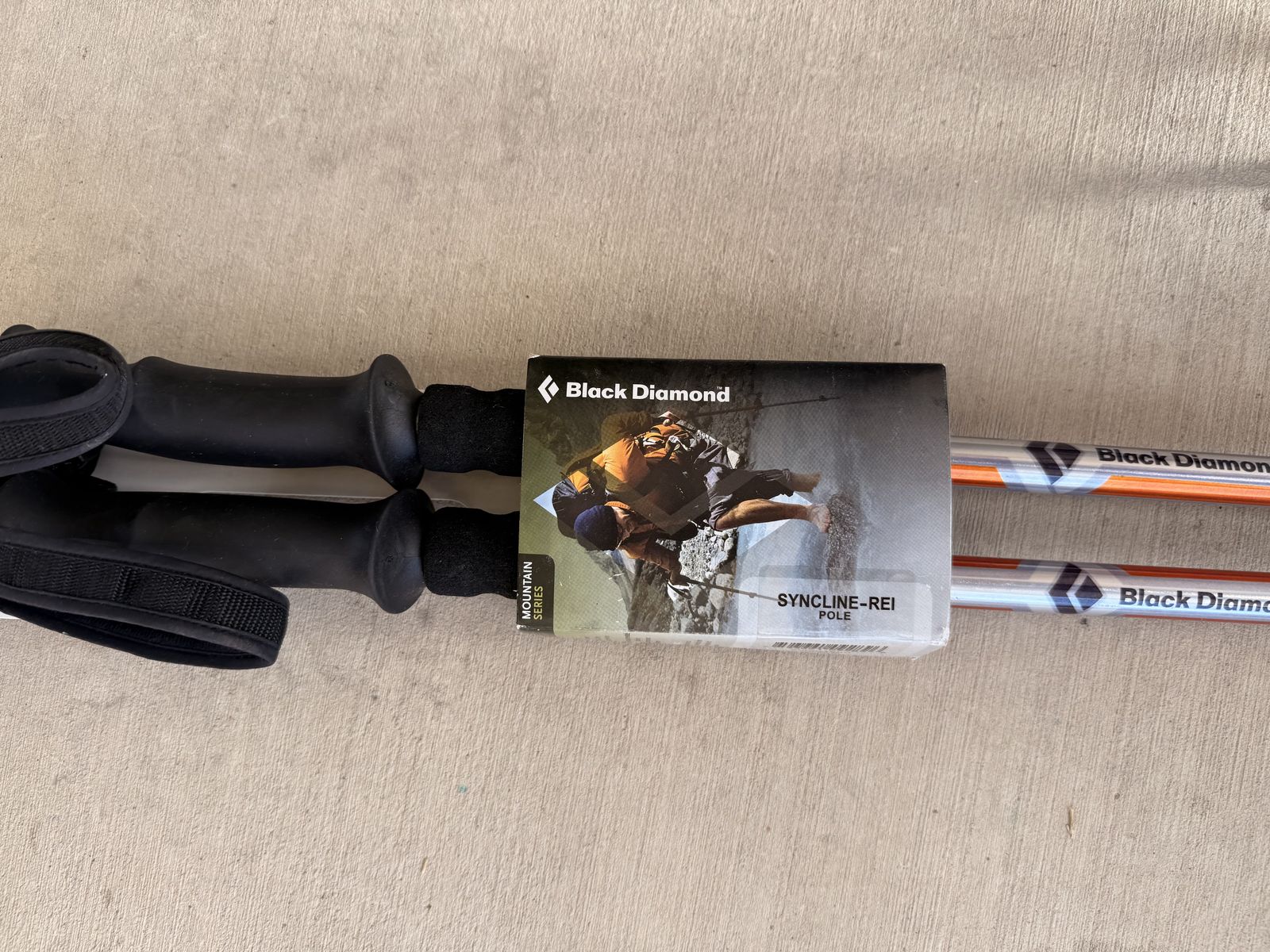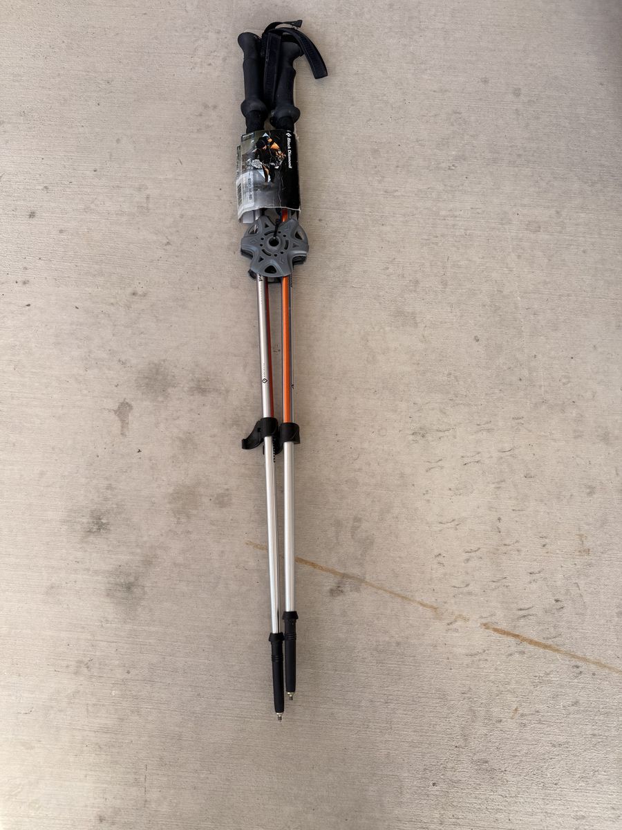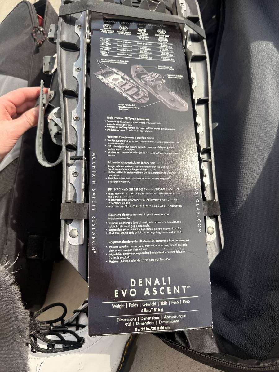 Included: MSR Denali Evo Ascent snowshoes (black) – new with tags MSR Denali snowshoes (red) – brand new 2 sets of Black Diamond SyncLine trekking poles – unused