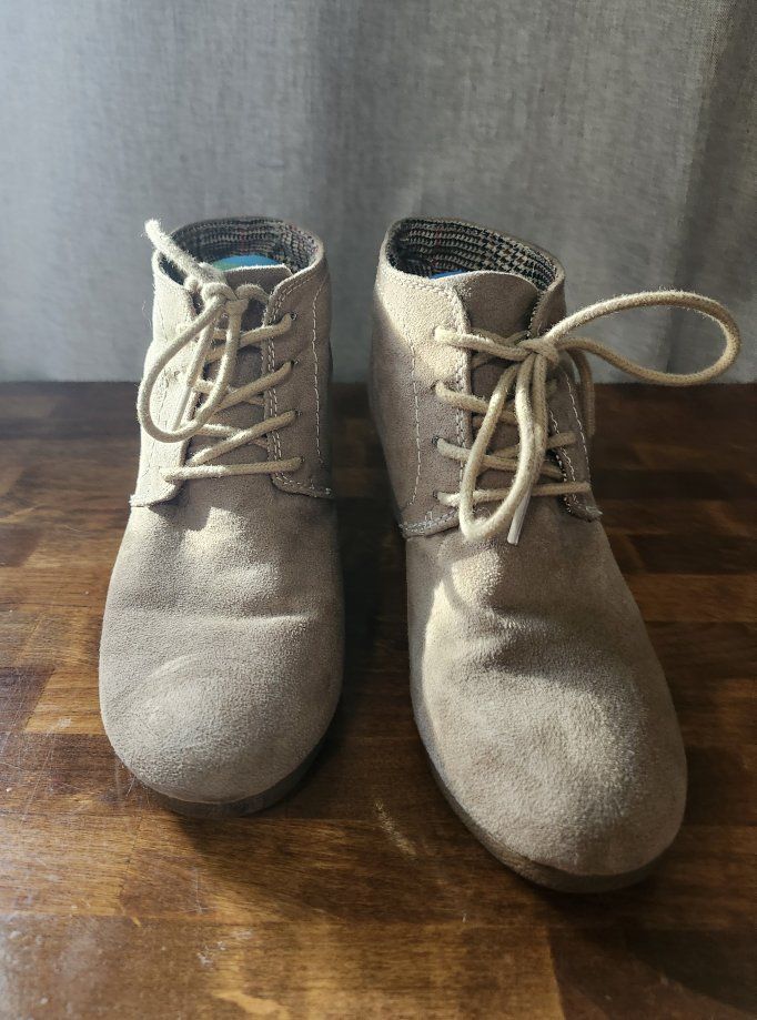 VenmoWomen’s taupe wedge sandals, size 7. Neutral color that goes with almost anything and works especially well with soft, earthy tones. Comfortable wedge heel that’s easy to walk in and great with dresses, jeans or casual summer outfits. They’ve been worn but still have life left in them. Just clearing out closet space and pricing them low so they go to someone who will enjoy them.