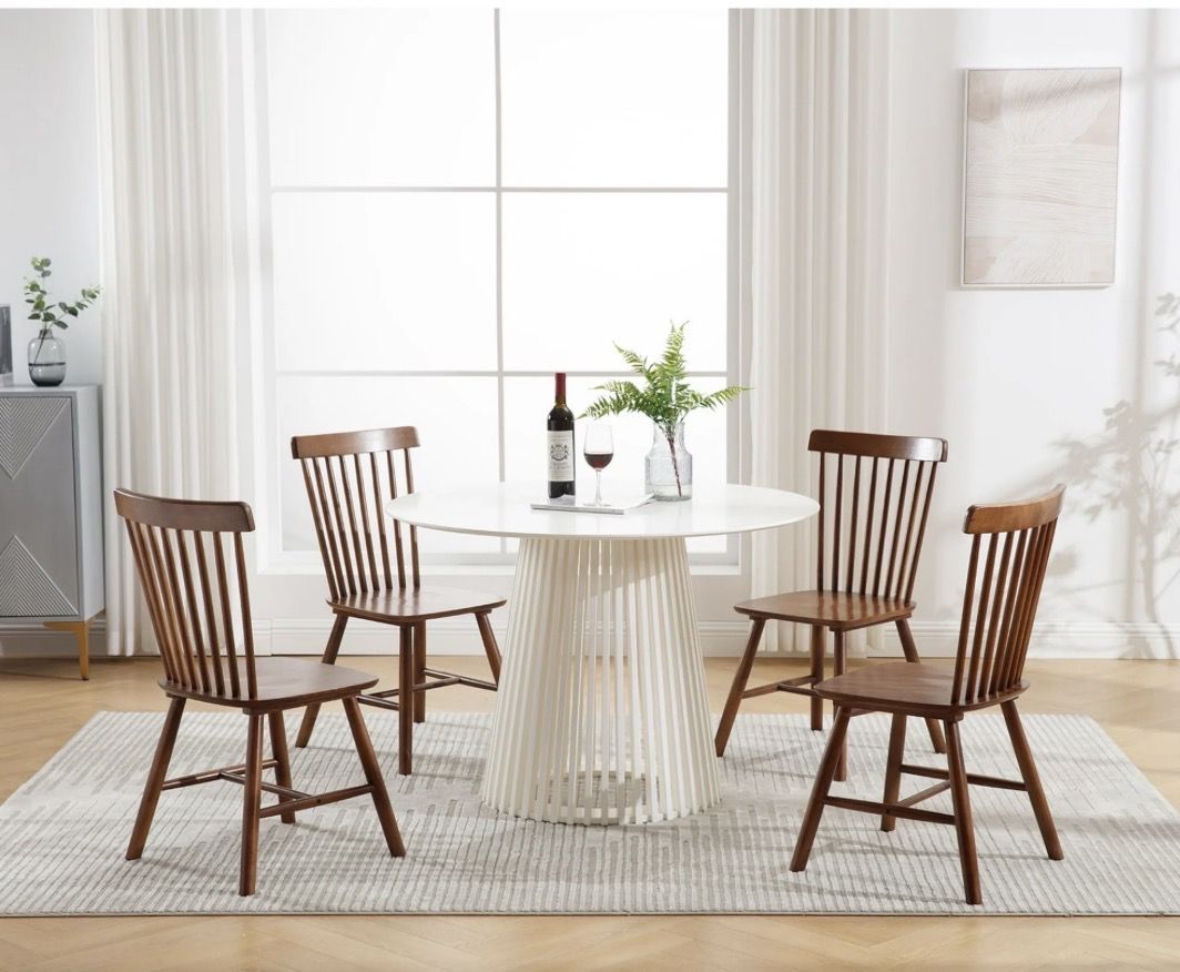 Farmhouse Windsor Dining Chairs Set of 4, Solid Wood Spindle Back Dining Side Chairs, Mid-Century French Country Oak Kitchen Chairs for Dining Room Living Room Kitchen Restaurant, Walnut