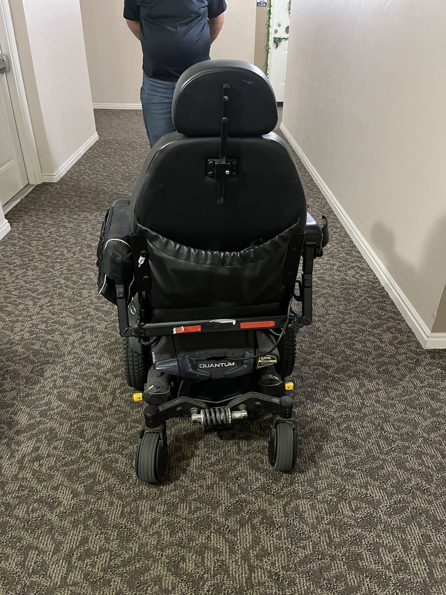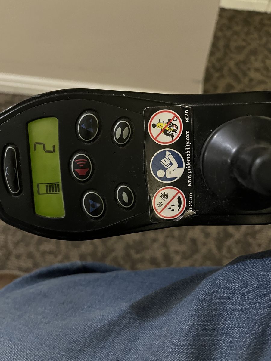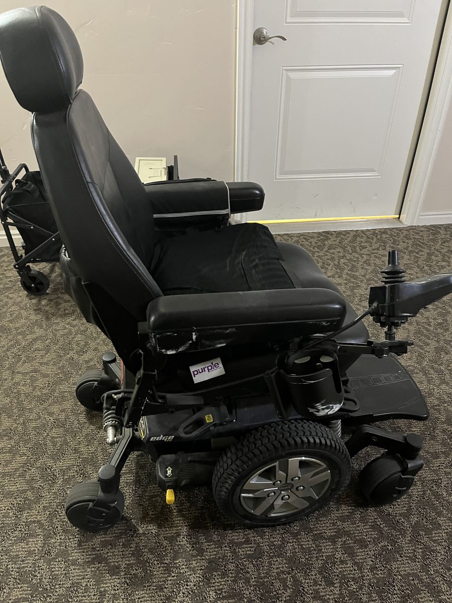 This chair comes with battery charger, owners manual, cup holder and a Purple seat cushion. Holds battery life for an extended time. It has 6 speeds and holds 400 pounds. $500 or OBO. Motivated seller.