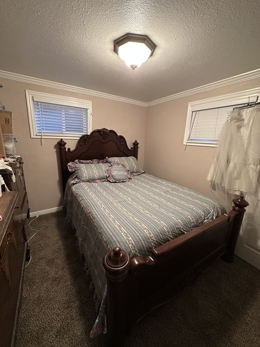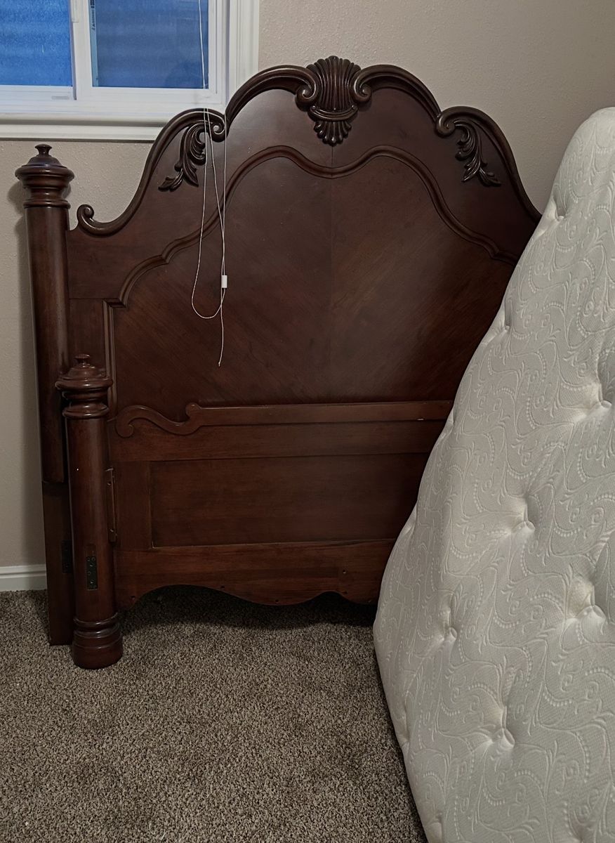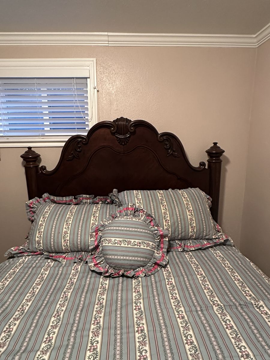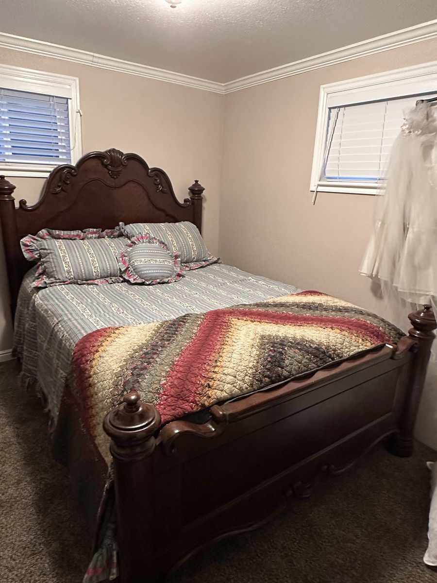VenmoBeautiful wooden queen bed (very lightly used). Bed placed in a guest room that was very rarely utilized. Wooden headboard, footboard. Mattress like new as it was rarely used and always had mattress cover on.