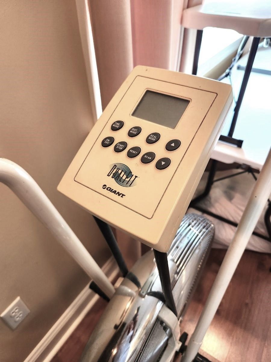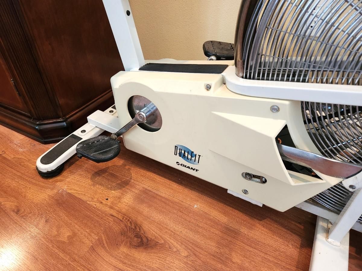 Giant DualFit Assault Air Bike, w/ Computer. This is very much like the famous Schwinn AirDyne AD4 (they even share some parts). One big difference is that this bike has pedals that can stop on a dime, and just coast when you want (much safer, and you can use stirrups on the pedals, and you can operate just the upper exerciser arms and the pedals just stay still). Plus it has enclosed connecting rods for the arms, to reduce chance of injury. It also has a more advanced computer than most of the Airdyne's.