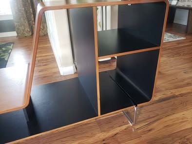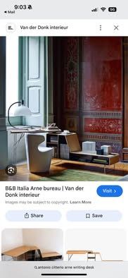 Originally designed by Antonio Citterio in 2005 and manufactured by B&B Italia, the Arne writing desk is a fantastic example of modern design. The desk swivels on top of the shelving unit so you can use it on one long wall or angle it. I will post a few examples.