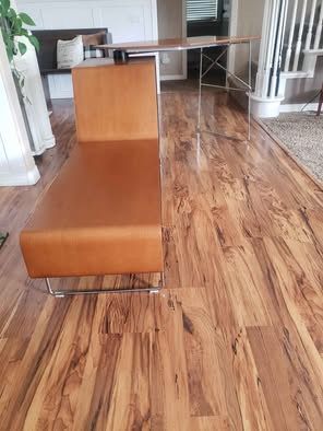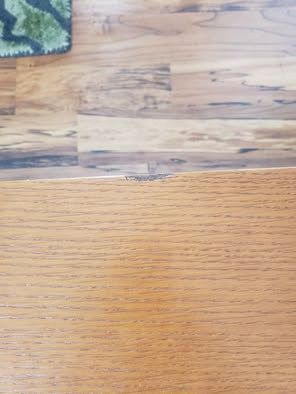 It does have a few nicks and chips on the edges. It is reversible, so the largest chip can be placed against the wall and hidden. Please see pictures and video for details and feel free to ask questions.
