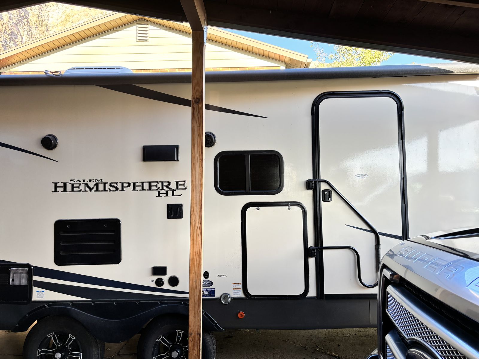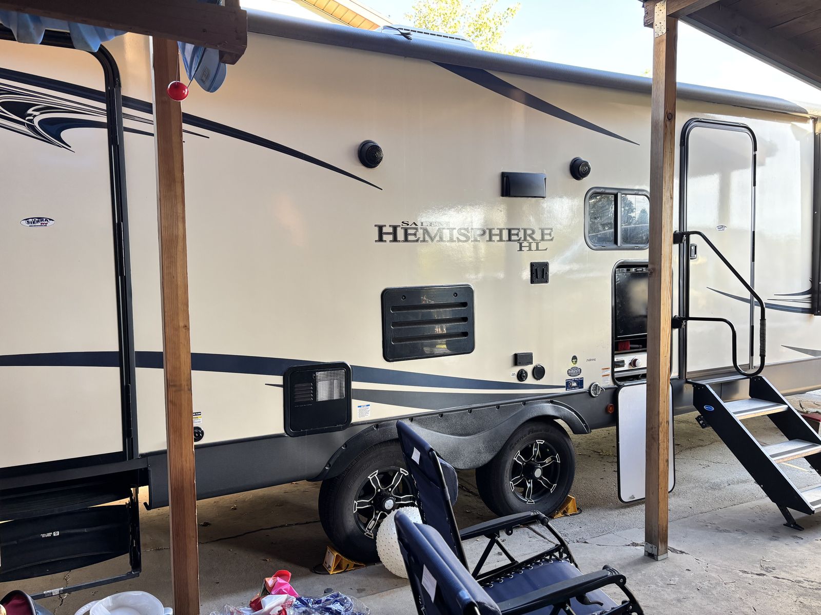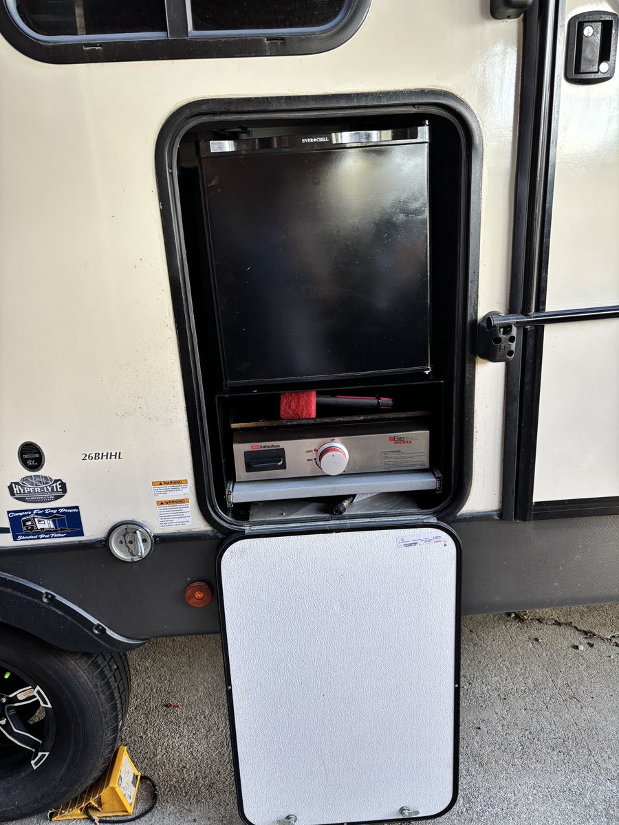RV is in great condition. Covered every winter along with having the lines blown out. Has an outdoor fridge and grill. Tires were rotated last year and had the bearings repacked. If you have any questions or would like to come take a look text or call; 385-209-7822