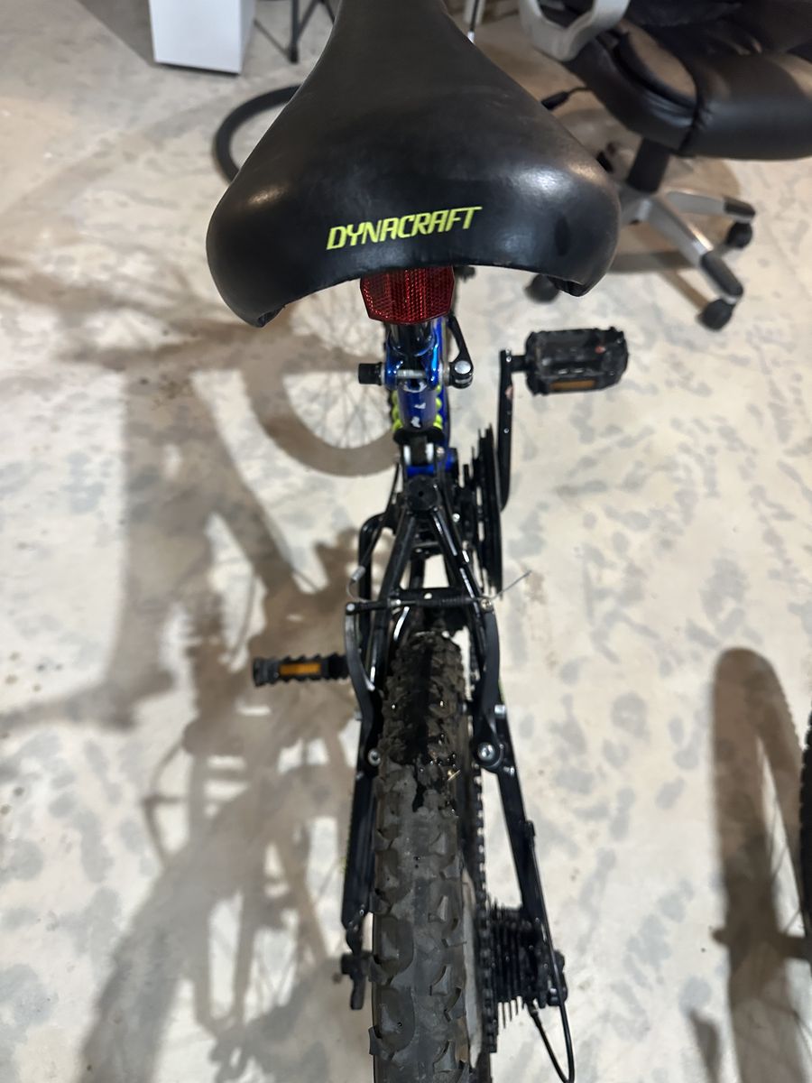 Venmo20” Dynacraft Mountain bike 21 speeds Suspension : front and rear suspension Wheel : 20” tires in good shape , hold air very well front and rear shifter All part are in and good shape Bike ready to use , ———— I accept Venmo and cash