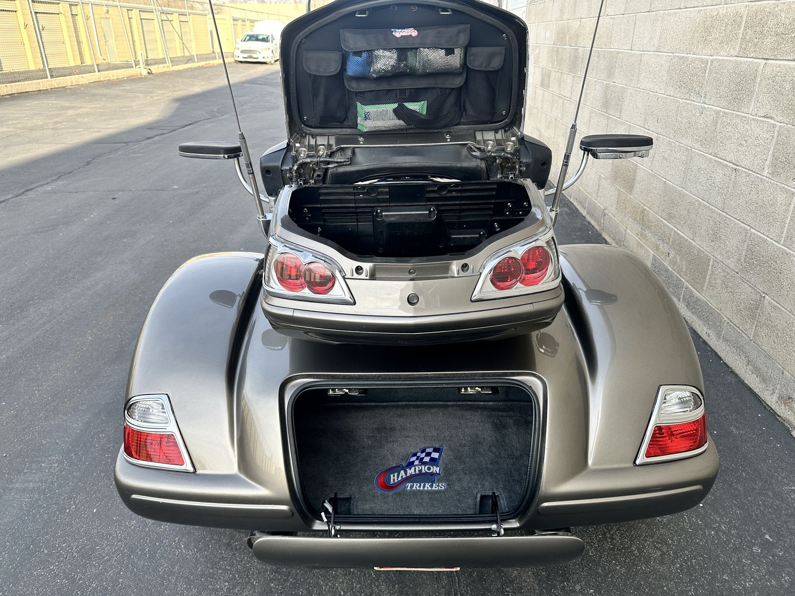 VenmoUpgraded 2006 Aud/Comf/Nav Goldwing with Champion IRS Independent Rear Suspension Trike. It has just over 40k miles. ALL maintenance has just been completed by Crossroads Trikes in SLC. Oil, air filter, spark plugs, brake fluid, brand new tires all around including a front Bridgestone BattleAxe trike tire. Many extras include driver and highway boards, driver backrest, passenger armrests, heel toe shifter, LEDs all around with Tridium fog lights and crystal turn signals. This is an excellent riding trike with nothing needed and It is 100% ready to tour the country. Please no trades and thanks for looking.