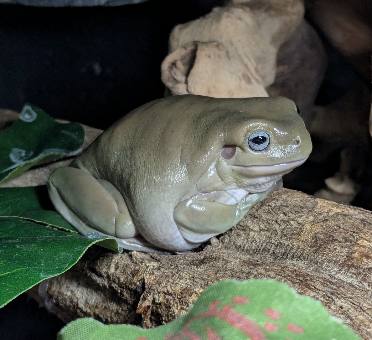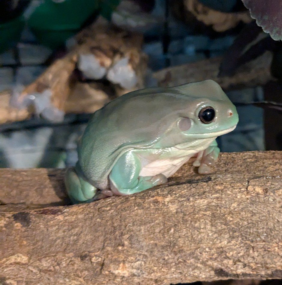 Venmo5 White's tree frogs, 2 years old. one male, 4 female. two are blue eyes. I tong feed red runner roaches. the male can be a picky eater but the females love to eat.