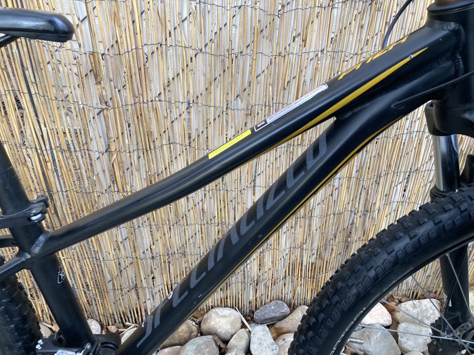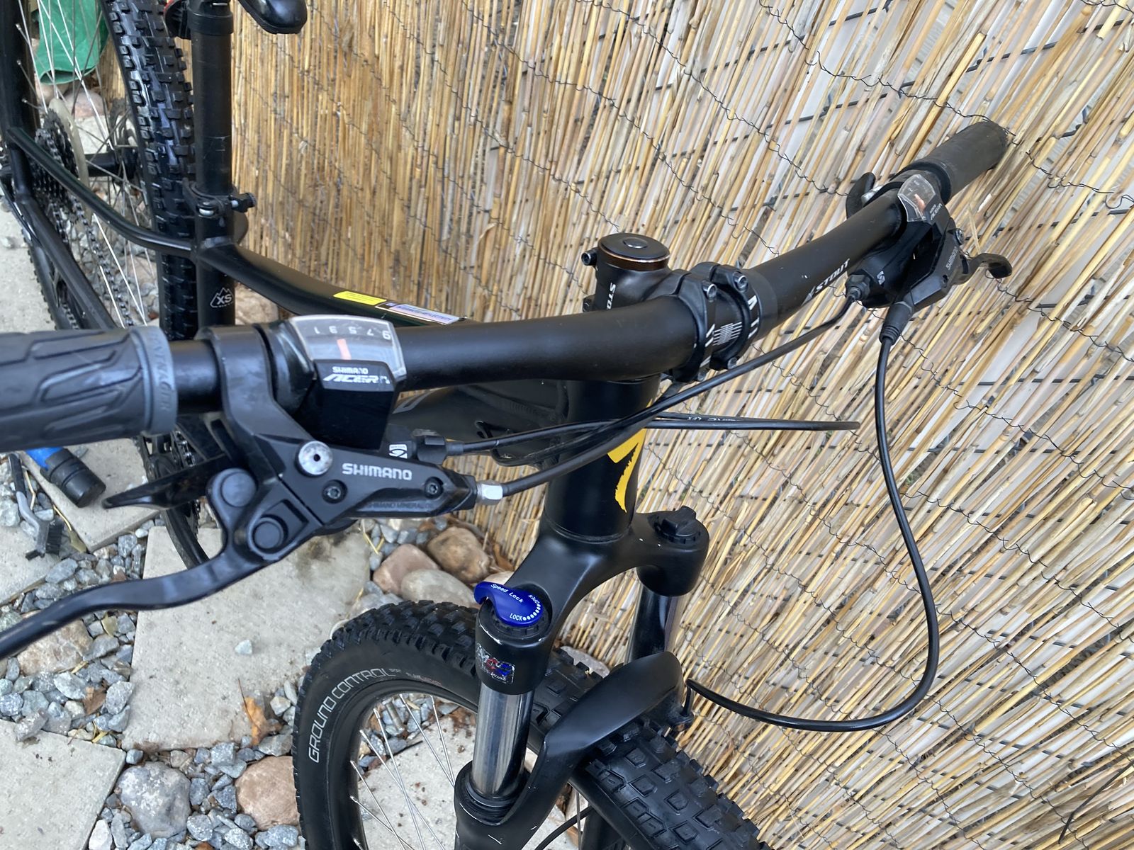 Has all the goodies hydraulic disc brakes, lightweight aluminum frame, front suspension with lockout switch, 27.5 tires , Shimano 3x9 speed trigger thumb shifters See Less See Less