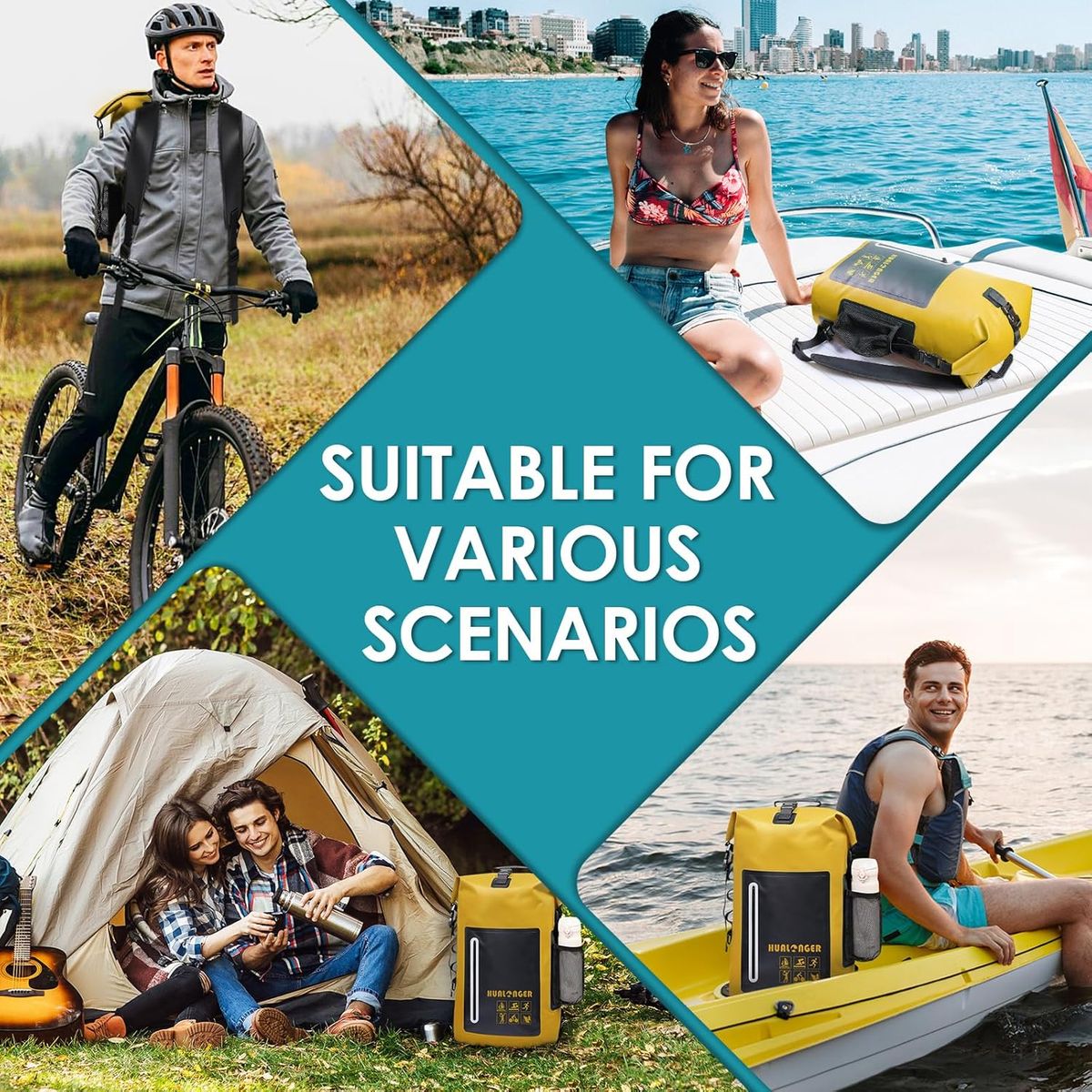 ApplePayFree shipping Dry Bag Backpack 20L/30L/40L- Roll Top Closure Bag - Heavy Duty Dry Bags Waterproof - Lightweight Durable Floating Dry Bag with IPX8 Waterproof Phone Case About this item 100% Waterproof Protection & Floating Design: Crafted with high-strength PVC and triple-layer roll-top closure, hualonger dry bag ensures complete waterproof protection for all weather conditions. Its air-tight seal allows keeps gear dry even submerged in water. Plus, the floating design prevents loss during water activities like kayaking or rafting Dry Bag Backpack: Features a front zippered pocket with reflective strips for easy access to small items and enhanced safety in low light. Includes side hooks and a water bottle pocket. The smooth surface is easy to clean—just rinse and wipe after use. Perfect for hiking, camping, or beach trips Extra Gift: Each of our waterproof dry bags comes with an extra IPX8 waterproof phone case. It is made of high-quality TPU material bag body + ABS reinforced lock buckle, which can protect your device even in wet conditions and record every beautiful moment Versatile for All Outdoor Adventures: Ideal for kayaking, paddleboarding, motorcycling, fishing, and more. Available in 20L (day trips), 30L (weekend adventures), and 40L (extended trips). A perfect gift for outdoor enthusiasts Lightweight & Stylish Colors: Choose from 4 vibrant colors (Black, Gray, Green, Yellow) to match your style. Ultra-lightweight design reduces travel fatigue while maintaining high capacity. Stand out on trails or water with this functional yet fashionable dry backpack