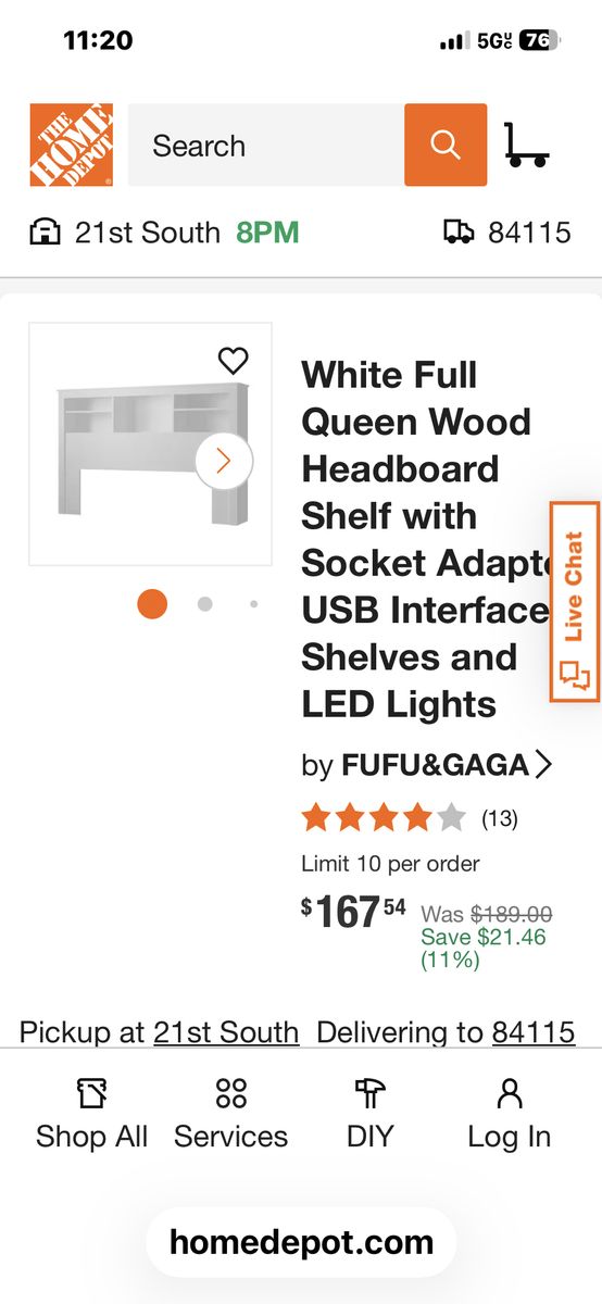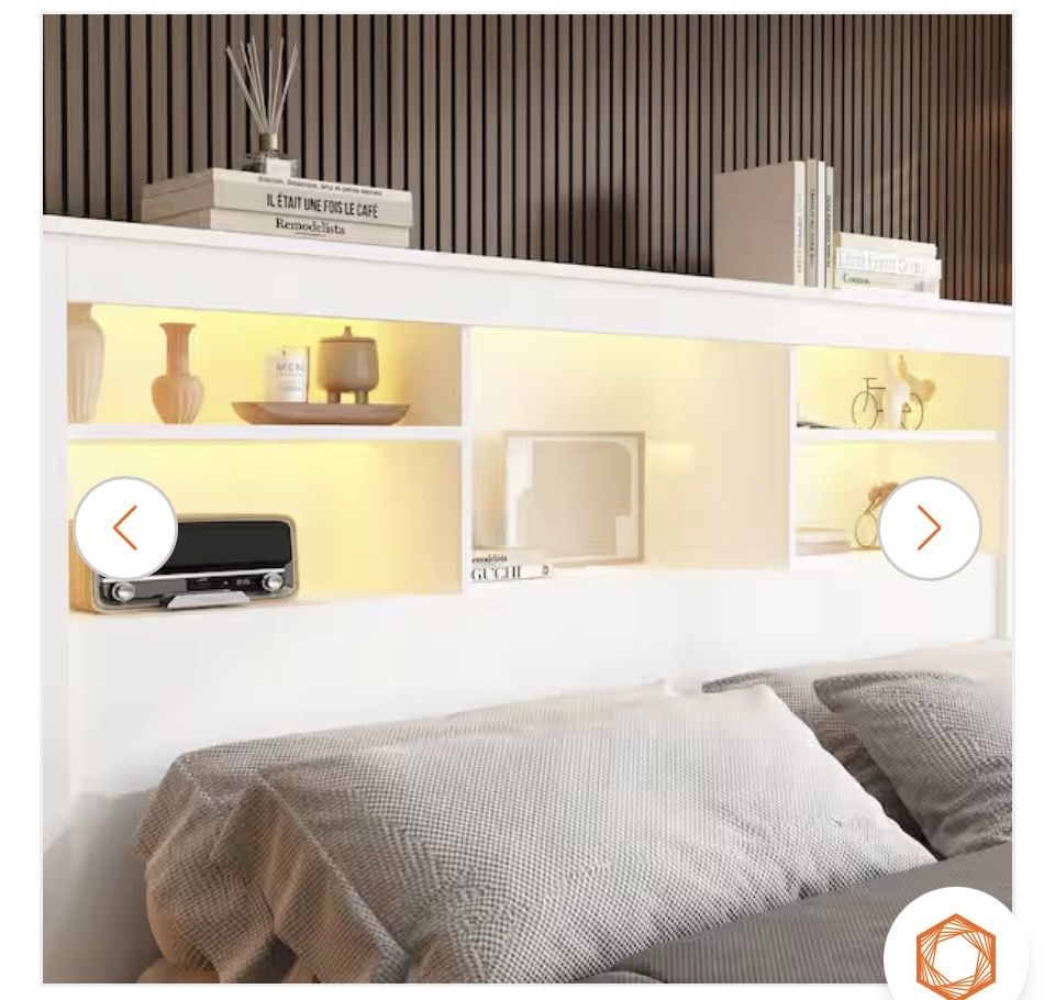 FUFU&GAGA White Full Queen Wood Headboard Shelf with Socket Adapter USB Interface, Shelves and LED Lights