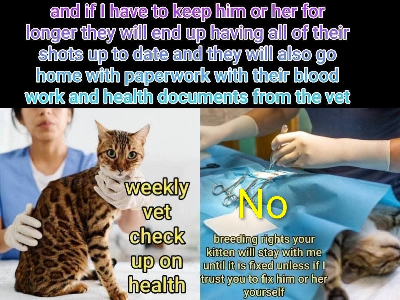 this litter will know longer have breeding rights but next year when my other male comes of age those kittens he produces will have papers and breeding rights with all of his litter I'm also thinking of getting another male that looks like this one but with spots and having his kittens go with breeding rights cuz he will also have papers as well if not maybe a silver male but I will for sure have breeding rights with my kitten's next year