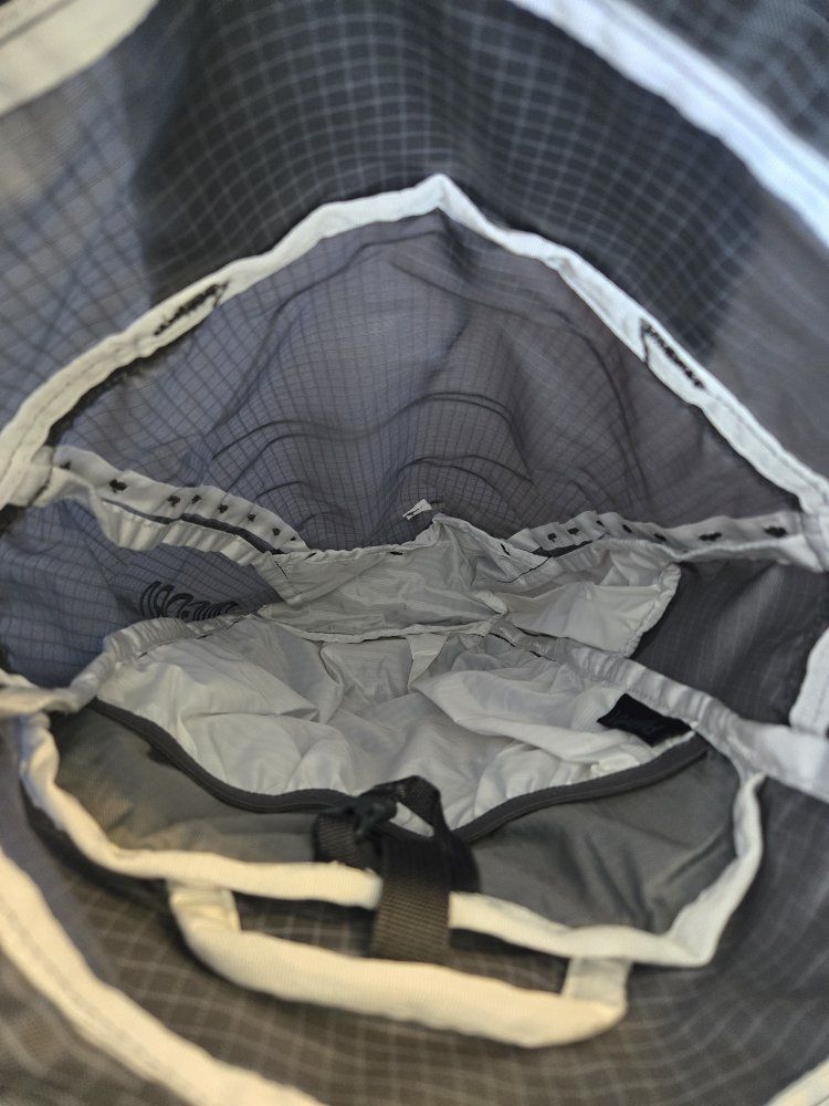Size: 23 cm (about 9 in) x 45 cm (about 17 in) X 146 cm (about 5.75 in) Weight: 420 grams (about 15 oz) Volume: 15 liters (about 915 cu. in.) Material: 420D Nylon 66 ripstop (body) 420D High-density Nylon (floor) 320g powernet (side pockets)