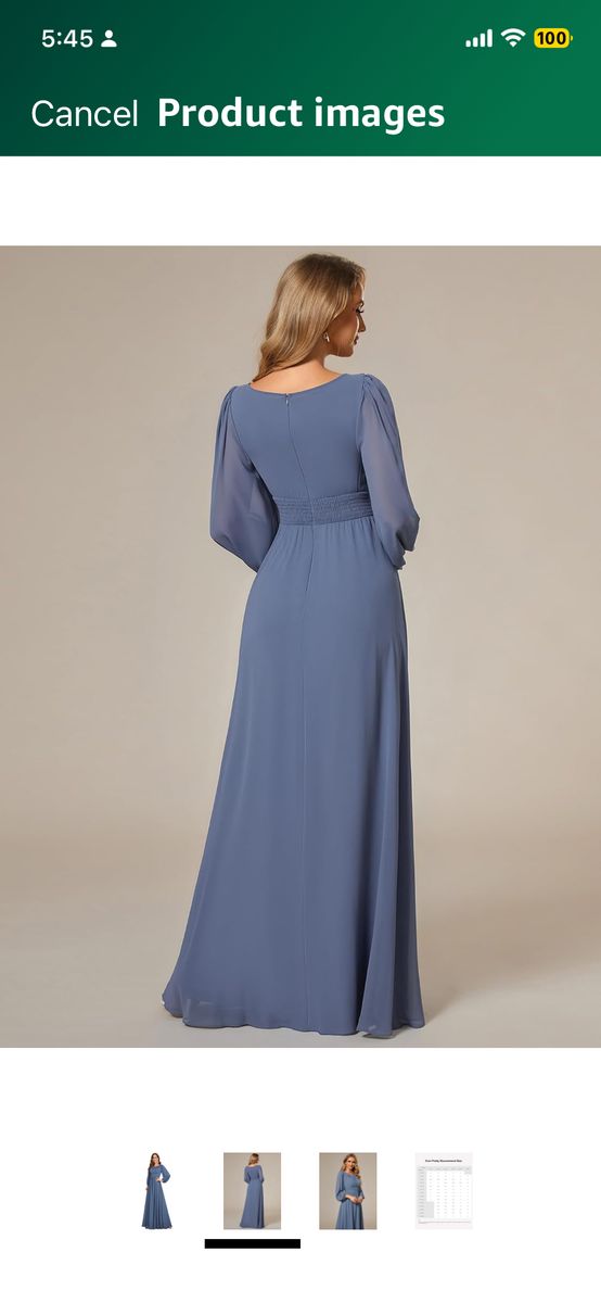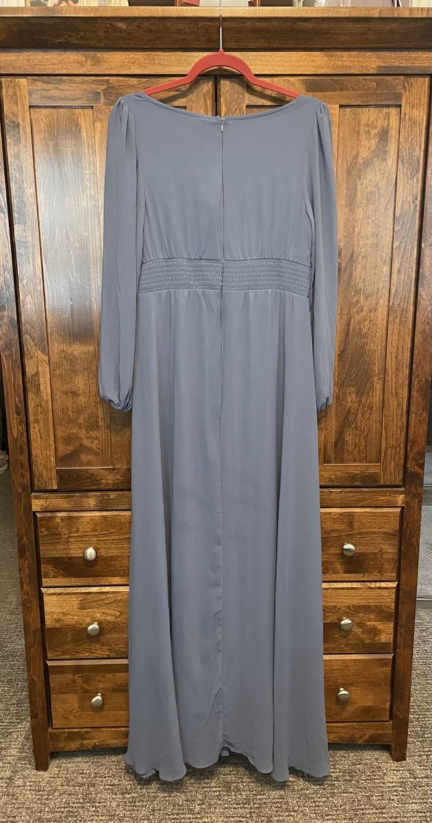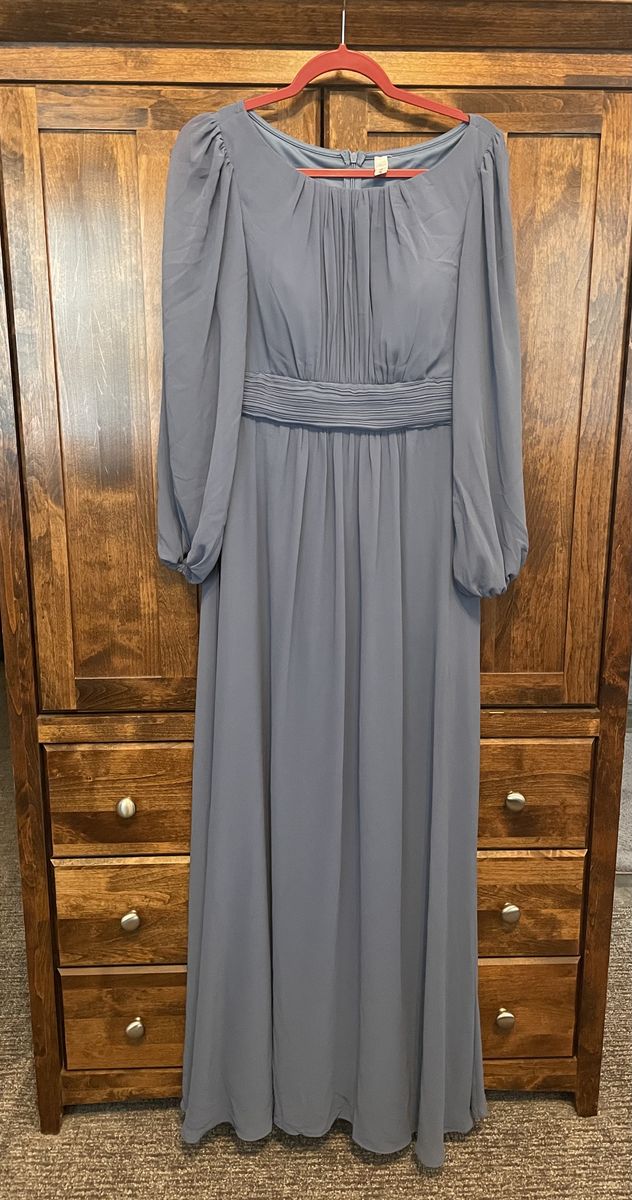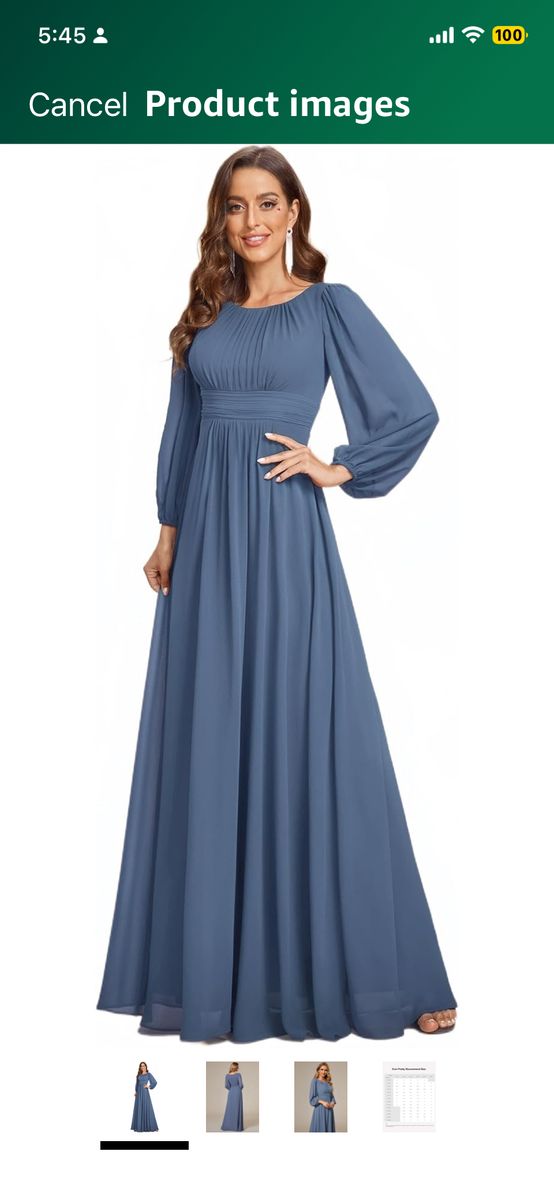 VenmoBeautiful Women’s dusty blue formal dress floor length Ever-Pretty brand Crewneck Long Lantern Sleeves A-Line Pleated Chiffon Very comfortable and elegant