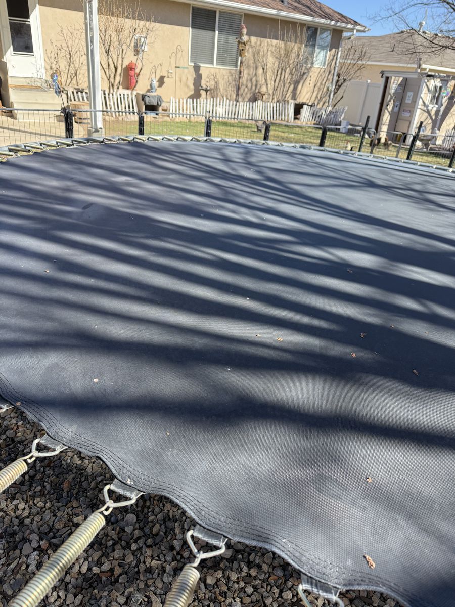 This is a heavy duty 15’ trampoline. They go for about 600.00 for sale on line. It includes the enclosure bars and enclosure but no spring mat. We do have some extra springs to go with it. It’s still in great shape. Cash only.