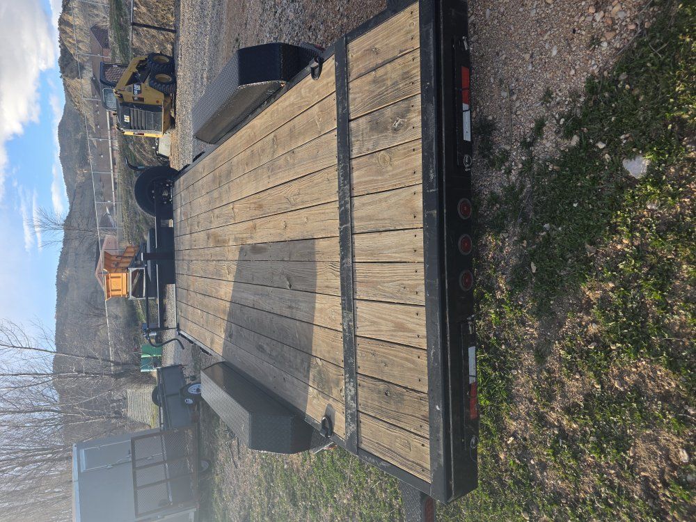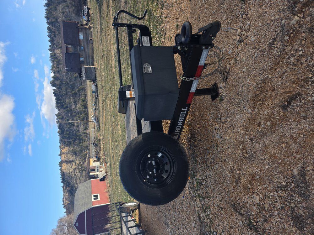 like new Iron Bull 14k equipment hauling trailer dovetail with pull out ramps at the rear.