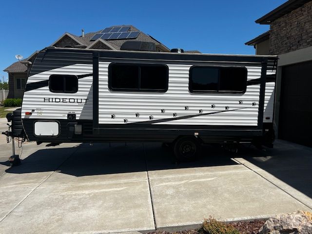 The trailer sleeps 5 comfortably. There is a 12 ft. slide out and a 10 ft. power, lighted awning. It also has a backup camera and a 2” receiver on the rear bumper. Tires are very good condition including the spare. It has EZ lube axles. Fresh water capacity is 27 gallons, and the gray and black water tanks are both 30 gallons. There is a stereo system with speakers on the inside and outside of the trailer. The refrigerator is a Dometic DM2672RBX that runs on propane or electric. The water heater is 6 gallon Suburban. The air conditioner works great. This trailer is solar ready. Dry weight is 4040 lbs. A storage cover, tire covers, and equalizer hitch are included. We have all the manuals and many other extras. Come take a look, you won’t be disappointed. Call or text Dave at 801-540-0225, but text is always best. We are asking $14,500 OBO.