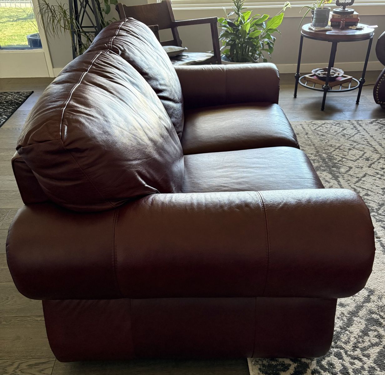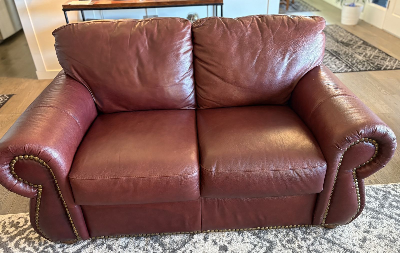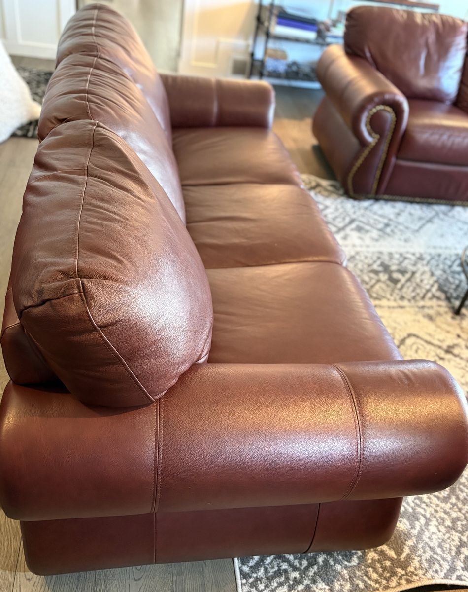 VenmoDark burgundy leather sofa & love seat. Good condition.