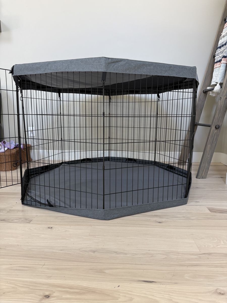 This is in excellent condition! Fantastic area to keep your pet contained and comfortable. It has top and bottom covers that can be used. Worked great for our puppy (who is no longer a puppy!) while we were potty training.