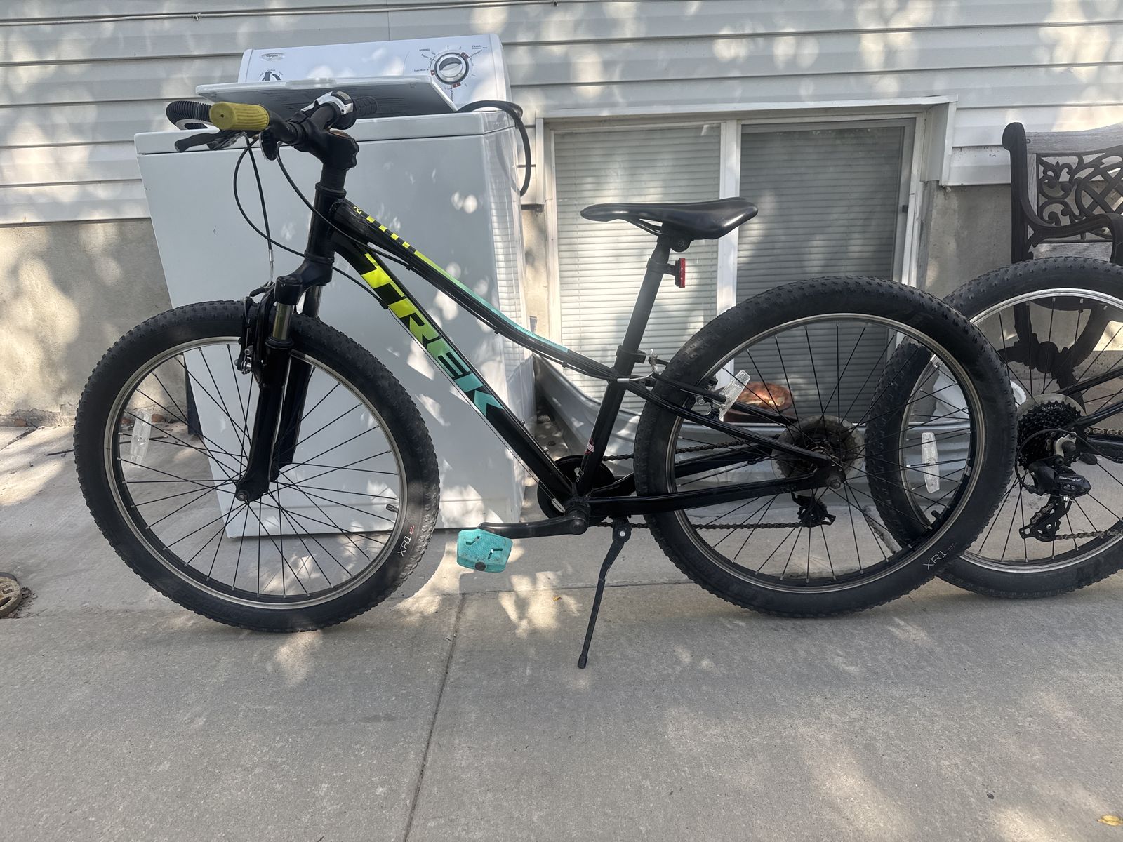 This Bike is still in excellent condition still in excellent shape. Both tires hold air tire size is 24 Seat is good, handle bars are good , pedals are good, Aluminum Frame is still solid & has no cracks, Brakes work great and shifters work great 8 speed & front suspension works great Ride smooth with no issues