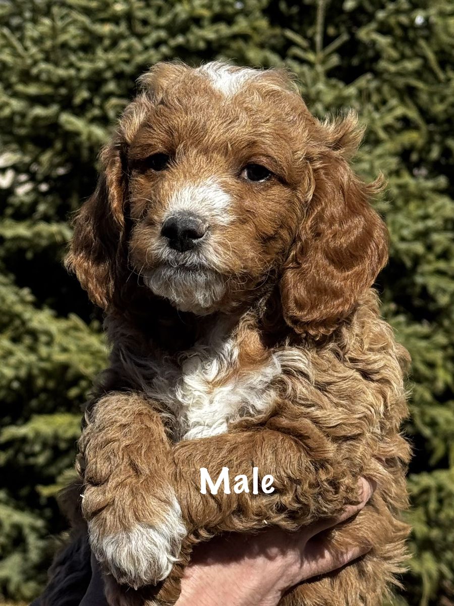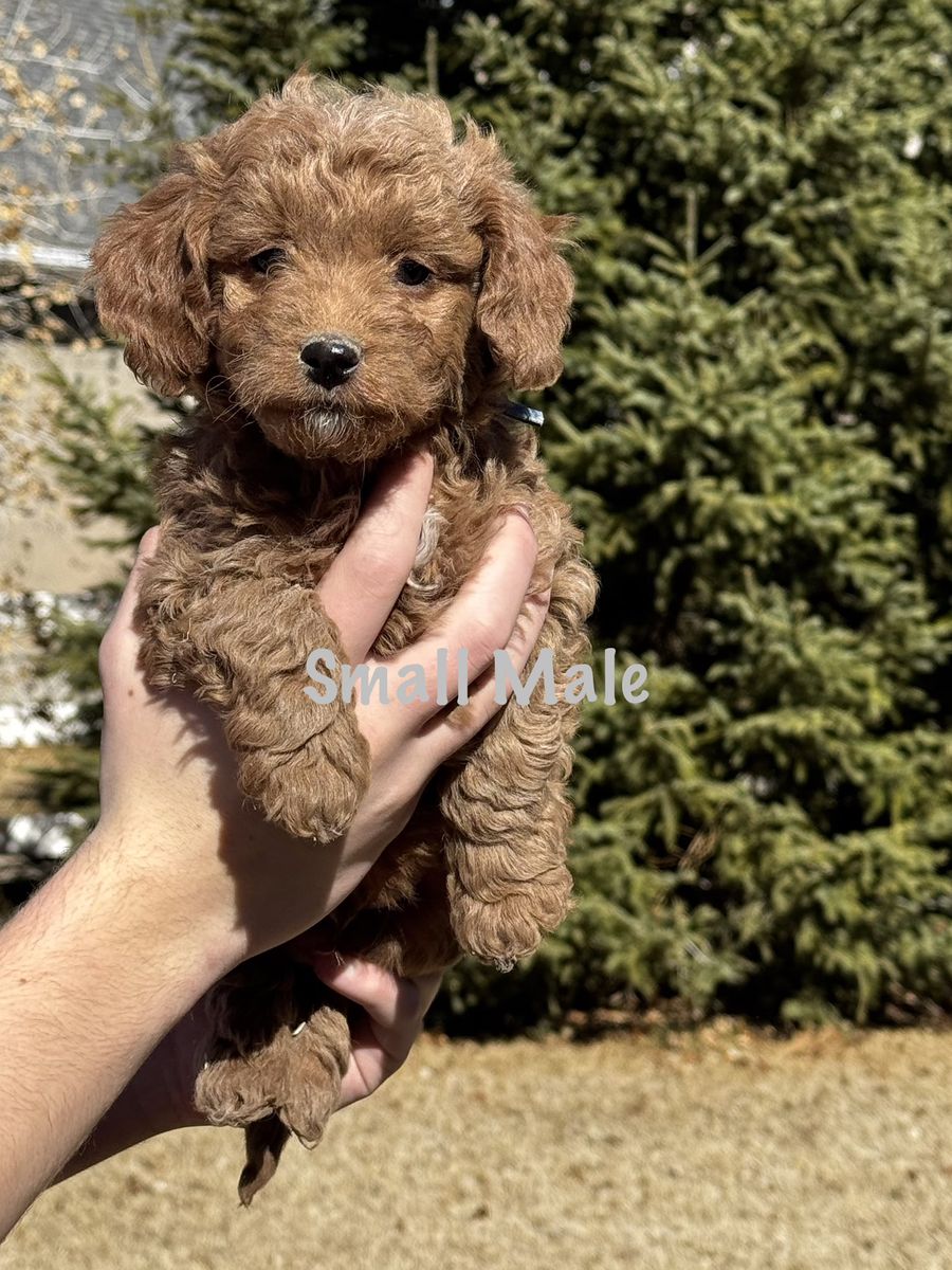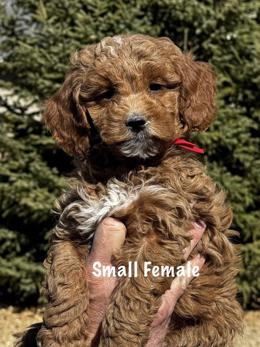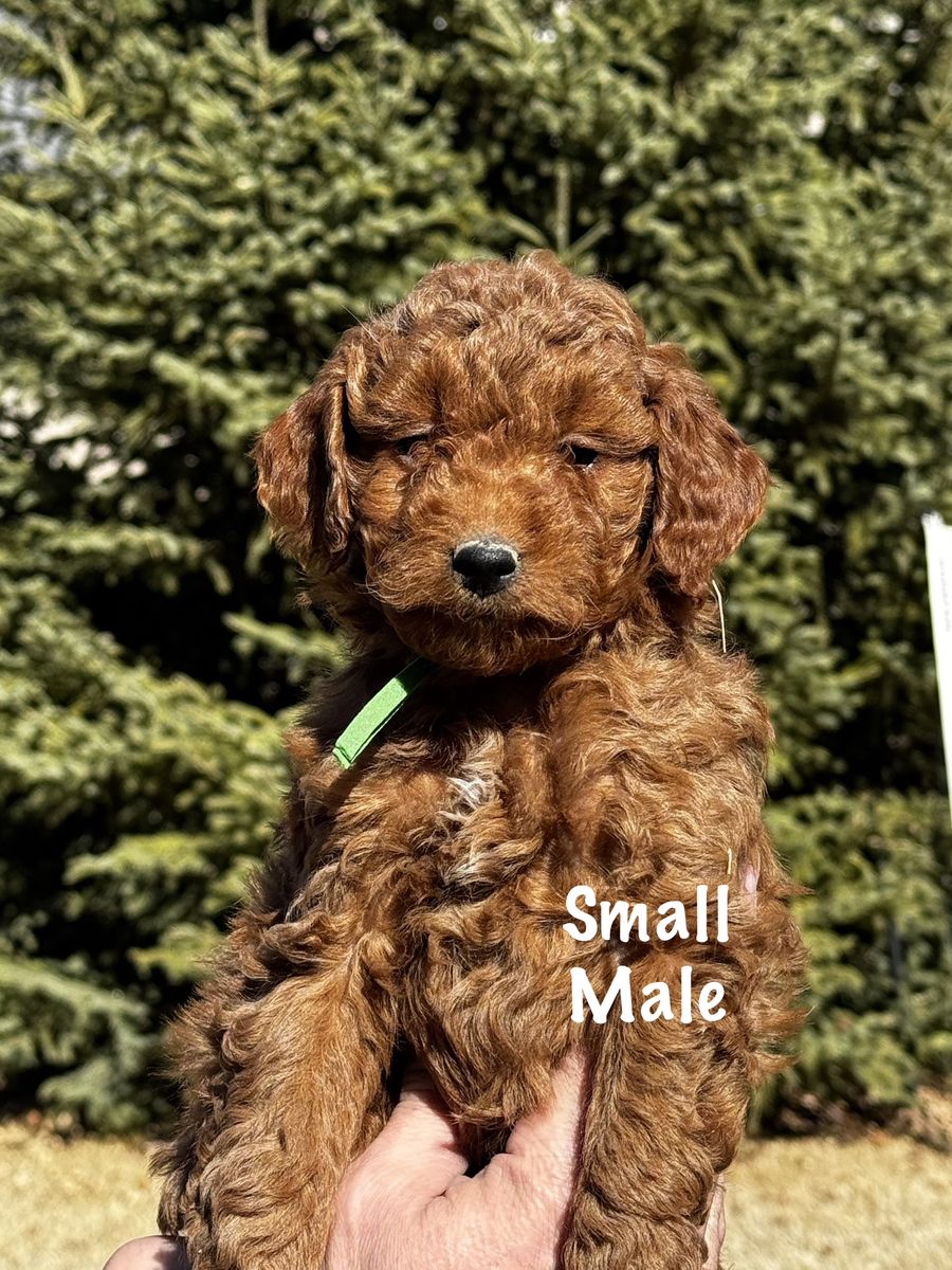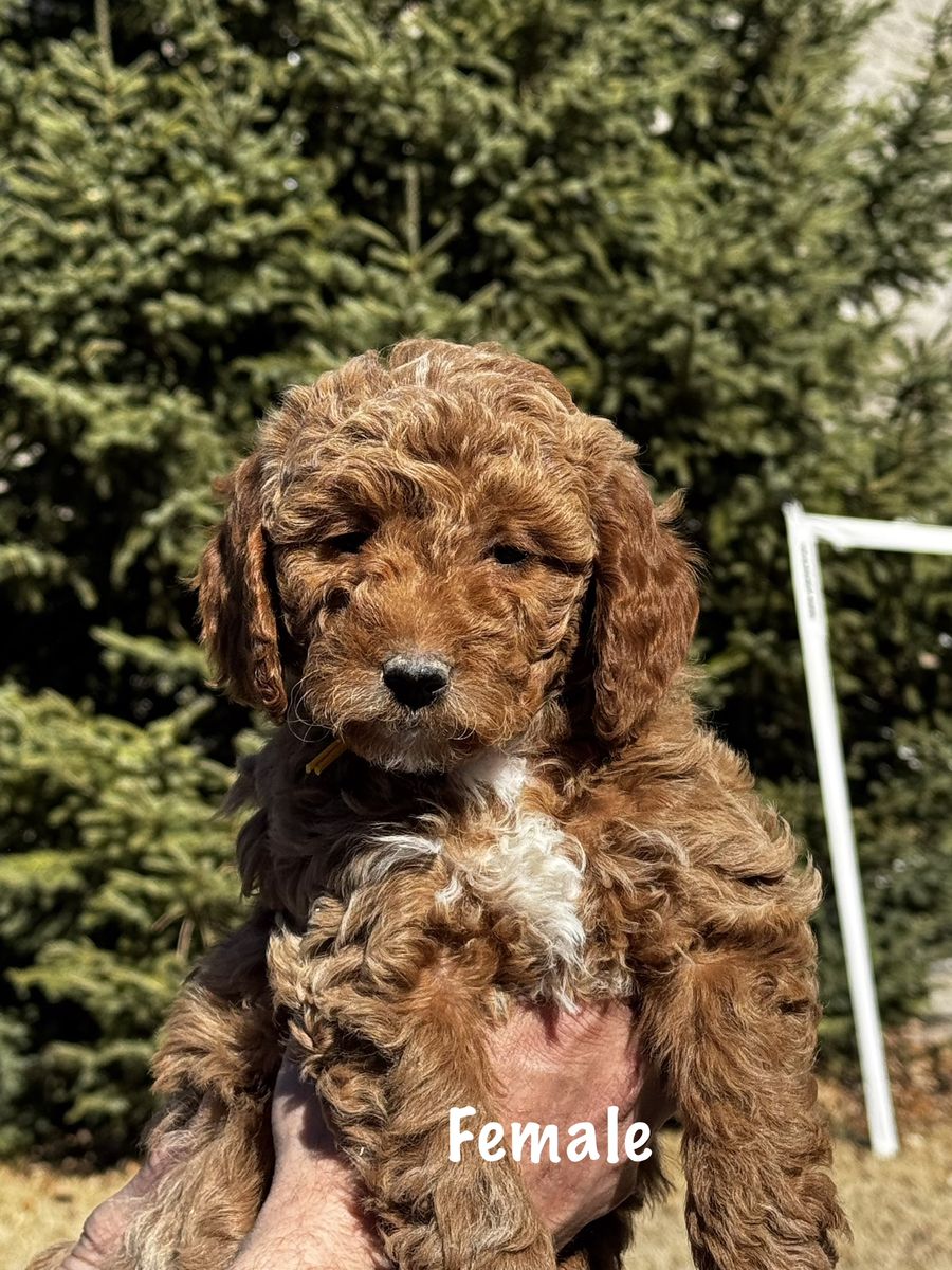 PayPalReady to go home! Whelped on January 13th, we have three males and three females available, averaging between 15 to 25 pounds as an adult. Puppies have been socialized with other dogs, children, teens and adult as well as ENS. Dew claws are removed and have been health checked by our veterinarian as well as having their first set of shots and dewormer. Each puppy will go home with a small baggie of food, that they have been eating, which is Science Diet Puppy, their shot record and a blanket that smells like mom and littermates to help with the transition. We are willing to meet you since we live in Price, but you are more than welcome to come and pick your puppy up and see mom. Willing to FaceTime as well. We have been breeding 1 to 2 litters of Goldendoodles for the past eight years. These puppies are family raised, and given a lot of attention. Mom is a 25lb Mini F1bb Goldendoodle and has had DNA/genetic testing through Embark. and dad is a 15 lb Mini F1b Goldendoodle.