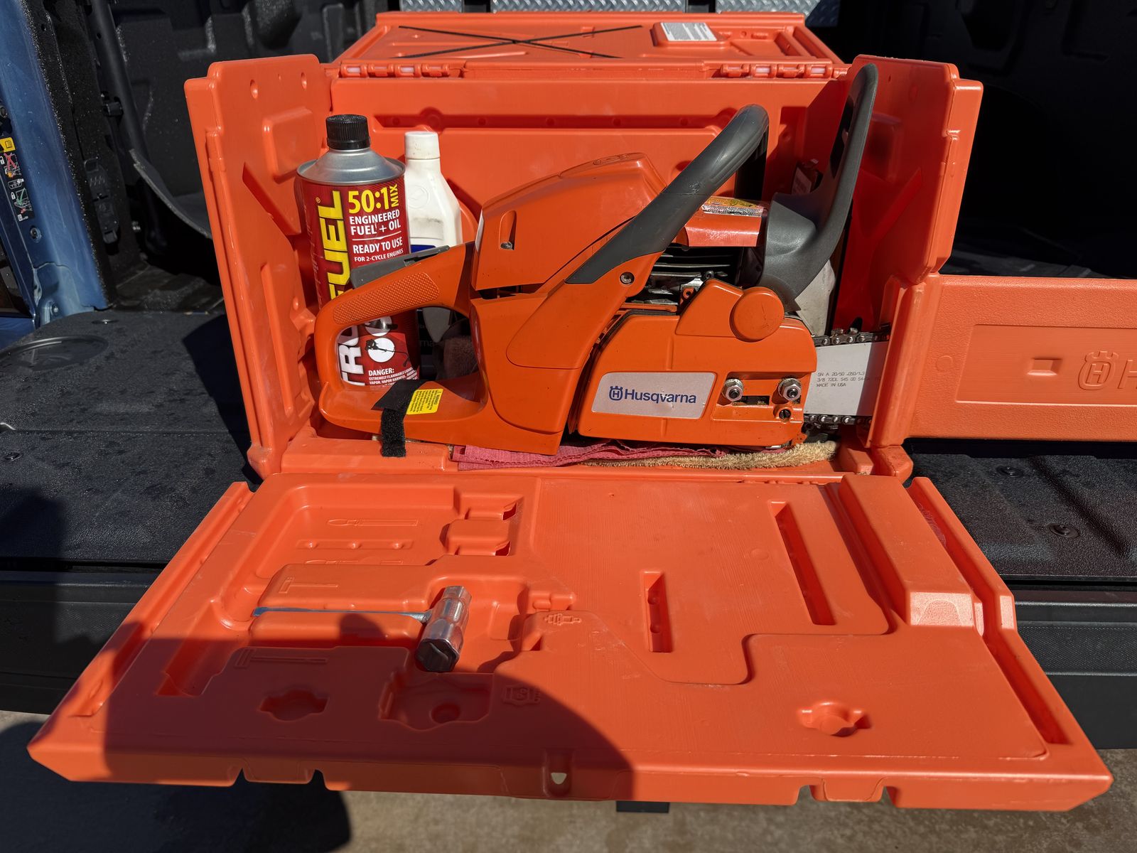 This is the 60cc X-Torq engine model, one of Husqvarna’s most popular ranch and firewood saws. Starts easily, runs strong, and cuts great.