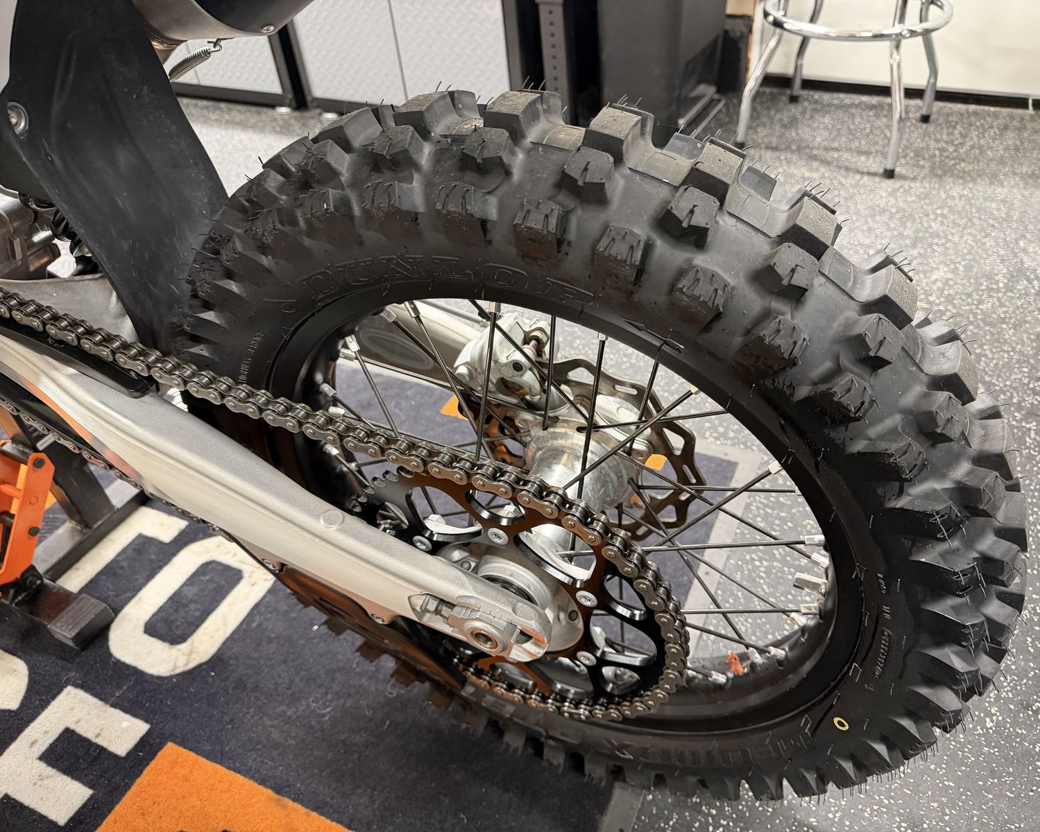 This bike has less than 25 hours on it. The oil and filter were changed after the first hour, and then every 5 to 7 hours after that. It had an oil and filter change 1 hour ago. The Seat Concepts seat has 1 hour on it, the rally tower has 3 hours of use, the fork seals and oil were replaced 3 hours ago, and I installed new tires and mousse inserts 1 hour ago.