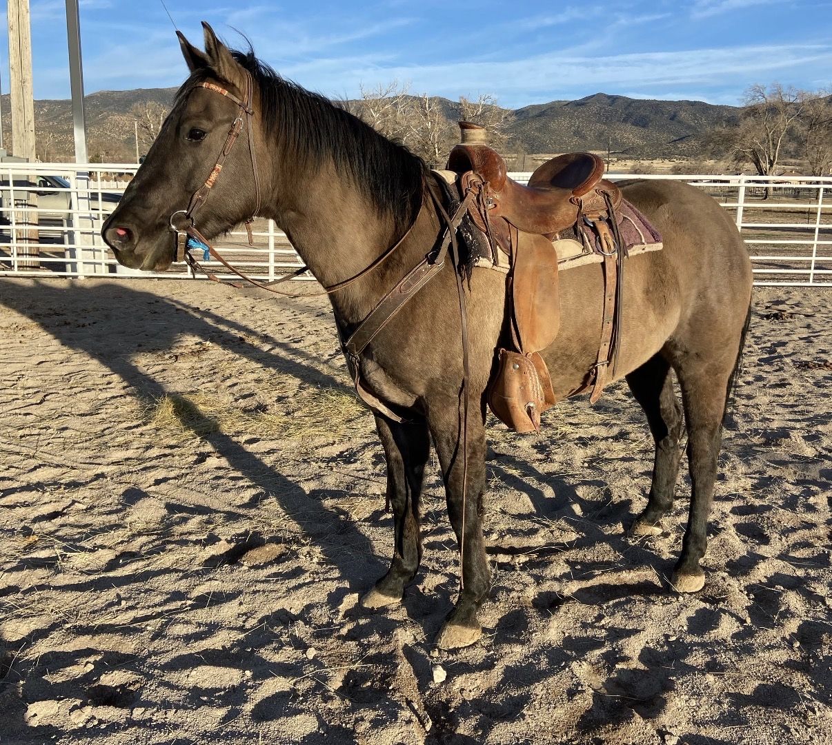 9 year old AQHA Grulla gelding. 16hh, started roping the dummy, has tracked the sled and calf’s. He will buck if he sits for days. He is not a mean horse at all, he just needs to work. No bit or kick. Just had 90day put on this gelding, however my work/school schedule has changed and I have no time to ride him so he is sitting. He is sound, has never taken a lame step. PPE welcome at buyers expense. He is a little shy but once he warms up to you he is fine. This guy needs a job. Needs experienced rider. 6k serious inquiries only. (8 zero five) 2 five 8- 30 three eight. Call, text or message me