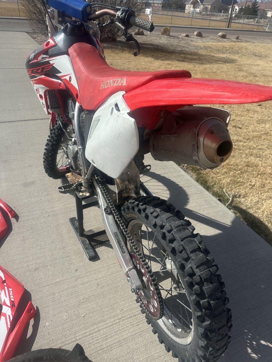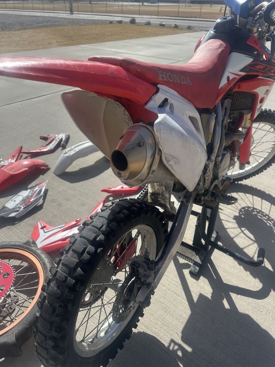 Venmo2007 Honda CRF150 R Big Wheel! This bike starts and runs great! It has a lot of aftermarket parts! FMF Power Bomb Head Pipe, Scott’s Triple Clamp, Pro Taper bars, Factory Connection Suspension, New Sprocket for both the Dirt Tire wheel and Sand Paddle wheel, lots of extra plastics pieces, New Front Tire, Tusk Radiator Hoses, Tusk Shifter. Has been a really good bike and has treated us well! Selling to get a Surron or Talaria. Possibly willing to trade for your e-bike depending on what it is.