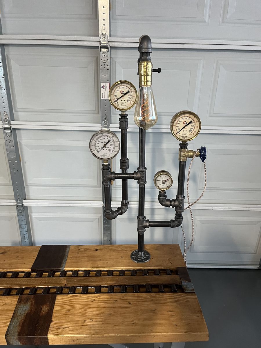 This auction is for a vintage industrial table, it is 39 inches wide 30 inches high 15 inches deep. This is a one of a kind table. Thanks for looking.