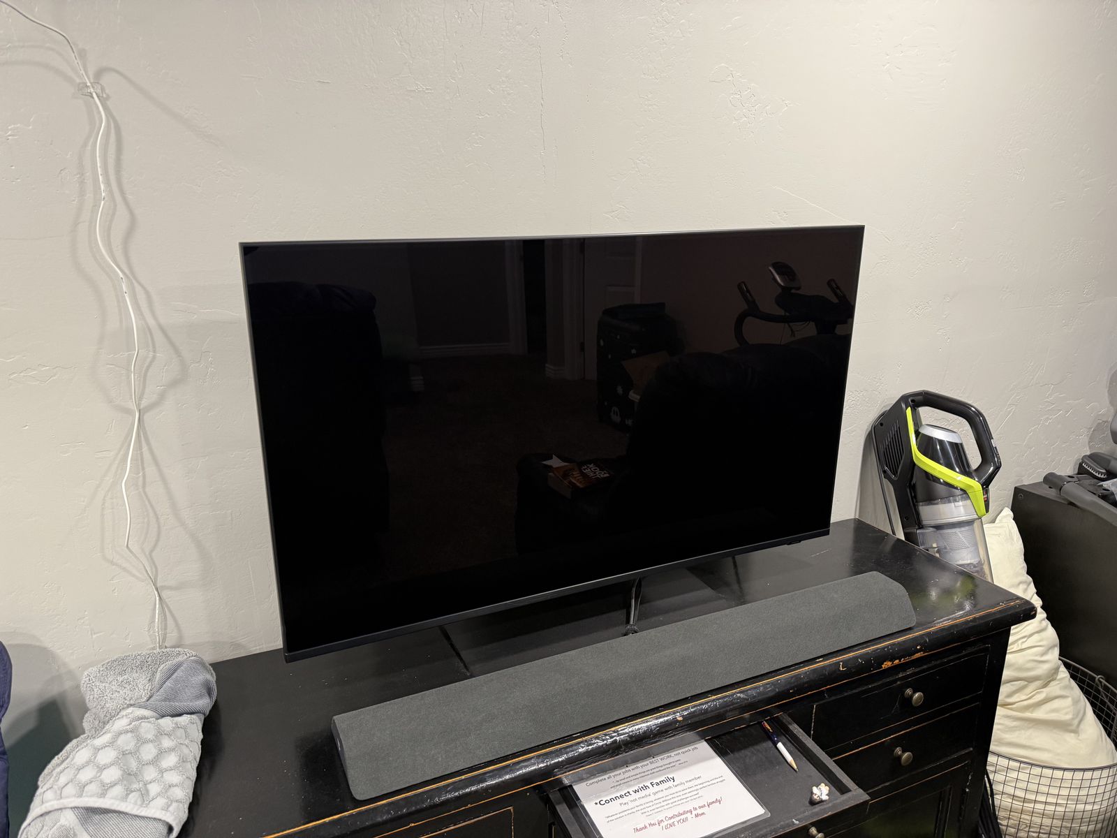 VenmoI've had this TV for a few years. It was the very high end when it came out. It is gorgeous. It gets very bright, has a ton of dimming zones, and just looks really good. The TV is in good condition (it has a tiny scratch on the upper left of the screen, but it is invisible in use and doesn't distract at all). Comes with the original mount, the solar charging remote, and the power cord. I'll reset it to factory settings. This is the perfect TV for a bedroom or smaller room. Works great with PCs and consoles. Runs consoles at 120fps and PC up to 144fps. It also has gorgeous HDR.